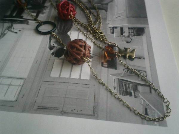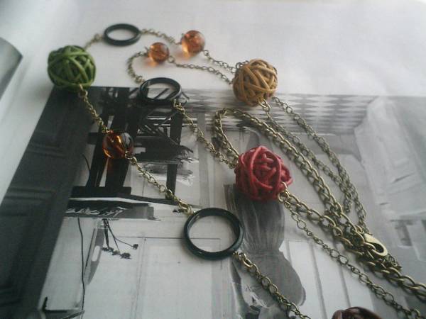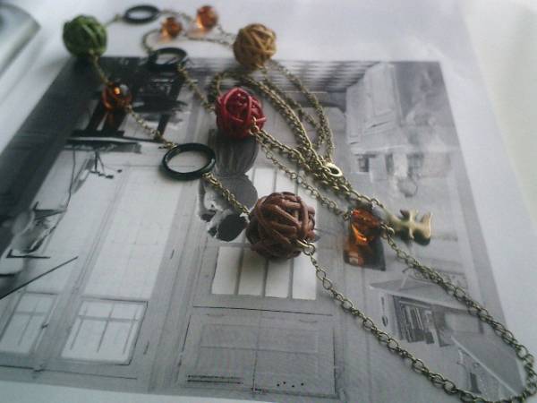 巴里の香り・・シリーズです♪キャンディを集めて・・シックなオニキスと異素材のネックレスです♪19ミリから22ミリ位のオニキスリングに20ミリ位のカラシ色やオリーブ色やレンガ色のラタン編みボールや琥珀色の樹脂ビーズを合わせました♪シックな色でまとめて大人のロマンチックしています♪長さは全長120センチ位で調節自由です♪そのまま長くされても2連にされても素敵です♪お揃いのブレスレットも出品しています♪シンプルで飽きのこないいつまでも着けられるデザインを考えて作りました!ハンドメイドをご理解いただいてノークレーム、ノーリターンでお願いします