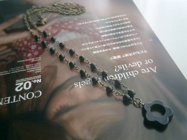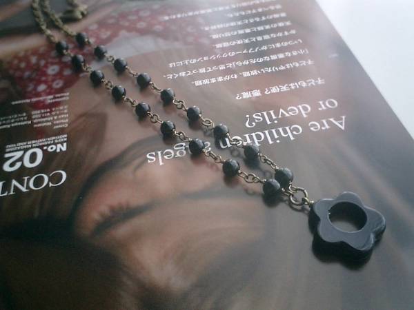 ロゼッタの仮縫い・・シリーズです♪ノスタルジックな鳩・・シックなオニキスのネックレスです♪♪深い黒のオニキスがニューヨークモダンしています♪6ミリの丸玉のオニキスのトップは23ミリ位のフラワーリングのオニキスです♪長さは全長82センチ位で調節自由です♪お揃いのネックレスやブレスレットも出品しています♪♪シンプルで長く着けていただけるデザインを考えて作りました♪ハンドメイドをご理解頂いてノークレーム、ノーリターンでお願いします