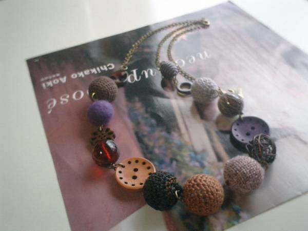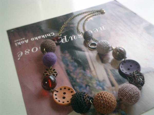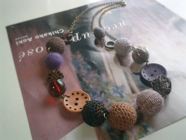 パンク・ストリート・・シリーズです♪キャンディ色の季節・・キュートな異素材のネックレスです♪15ミリから25ミリ位までのシェルリングやワイヤーボールやウッドのボタンやフェルト玉や編みボールや豹柄のデザイン樹脂や麻ボールなどパープルやブラウンやグレーやワイン色などシックな色を集めて大人可愛い表情です♪長さは全長80センチ位で調節自由です♪チョーカー風にされても素敵です♪お揃いのブレスレットも出品しています♪シンプルで飽きのこないいつまでも着けられるデザインを考えて作りました♪ハンドメイドをご理解頂いてノークレーム、ノーリターンでお願いします