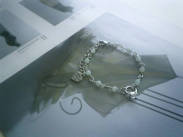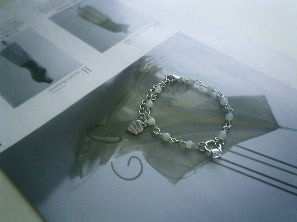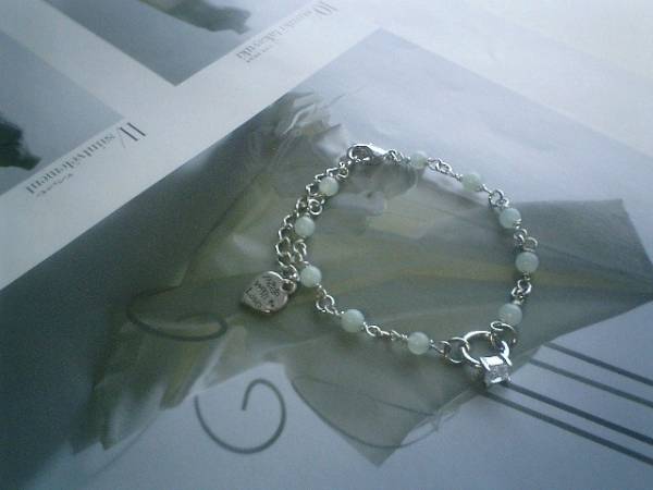 センチメンタル・ガール・・シリーズです♪水色の妖精・・可憐なアマゾナイトのブレスレットです♪淡いブルーグレーのアマゾナイトは4ミリの丸玉です♪ジルコニアリングを合わせてキュートな表情です♪長さは全長22センチ位で調節自由です♪♪お揃いのネックレスも出品しています♪シンプルで合わせやすいデザインを考えて作りました♪ハンドメイドをご理解いただいてノーリターン、ノークレームでお願いします♪