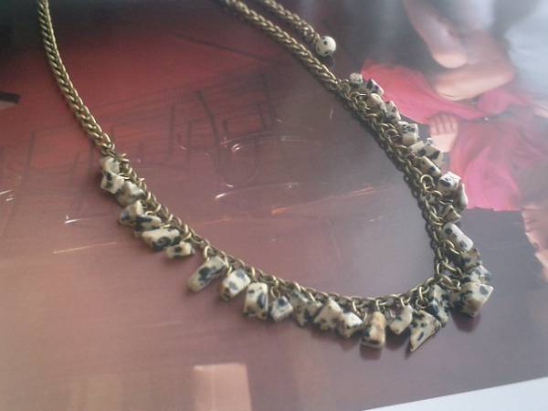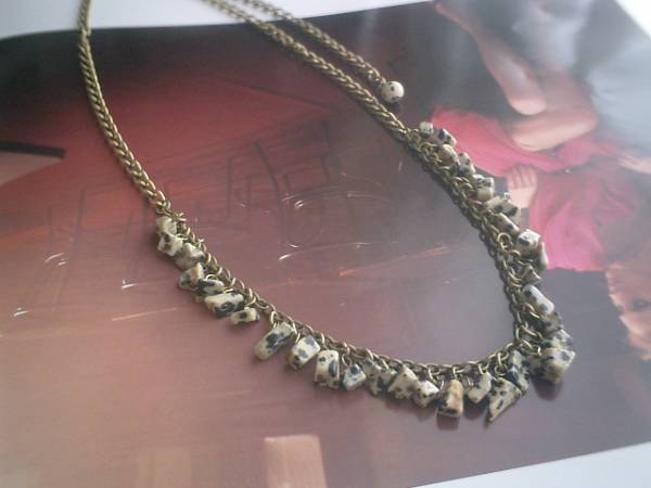 ロマンチック見本帳・・シリーズです♪偶然の恋人・・キュートなダルメシアンのネックレスです♪ダルメシアンジャスパーは4ミリから6ミリ位までのさざれです♪長さは全長58センチ位で調節自由です♪チョーカー風にされてもブレスにされても可愛いです♪お揃いのネックレスやブレスレットも出品しています♪シンプルで飽きのこないいつまでも着けられるデザインを考えて作りました!ハンドメイドをご理解頂いてノークレーム、ノーリターンでお願いします