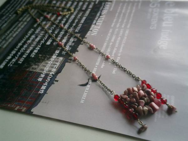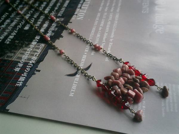 自分探しの旅・・シリーズです♪ベネチアに恋して・・深い赤とモーヴピンクのネックレスです♪シックなダークピンクのロードナイトはさざれと4ミリの丸玉です♪6ミリの深い赤のチェコビーズを合わせました♪さりげなくアートモダンなデザインです♪長さは76センチ+アジャスター14センチで最長90センチ位です♪♪お揃いのネックレスやブレスレットも出品しています♪シンプルで飽きのこないいつまでも着けられるデザインを考えて作りました!ハンドメイドをご理解頂いてノークレーム、ノーリターンでお願いします