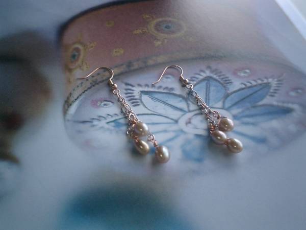 ロマンチック見本帳・・シリーズです♪シックに華やかに・・シャンパンゴールドの淡水パールのピアスです♪ピンクゴールドのチェーンを合わせて大人のロマンチックしています♪♪淡水パールは8×6ミリ位です♪トップに集めてキュートな表情です♪長さは全長6・5センチ位です♪♪♪イヤリングにも変更出来ます♪お揃いのネックレスやブレスレットも出品しています♪シンプルで飽きのこないいつまでも着けられるデザインを考えて作りました!ハンドメイドをご理解頂いてノークレーム、ノーリターンでお願いします