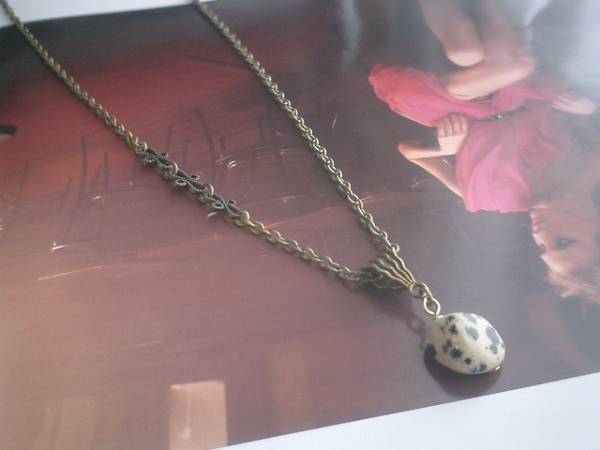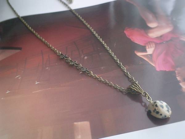ロマンチック見本帳・・シリーズです♪偶然の恋人・・キュートなダルメシアンのネックレスです♪ダルメシアンジャスパーは13ミリ位のラフタンブルです♪シックな座金やお花のチャームを合わせて可憐な表情です♪長さは76センチ+アジャスター14センチで最長90センチ位です♪お揃いのネックレスやブレスレットも出品しています♪シンプルで飽きのこないいつまでも着けられるデザインを考えて作りました!ハンドメイドをご理解頂いてノークレーム、ノーリターンでお願いします