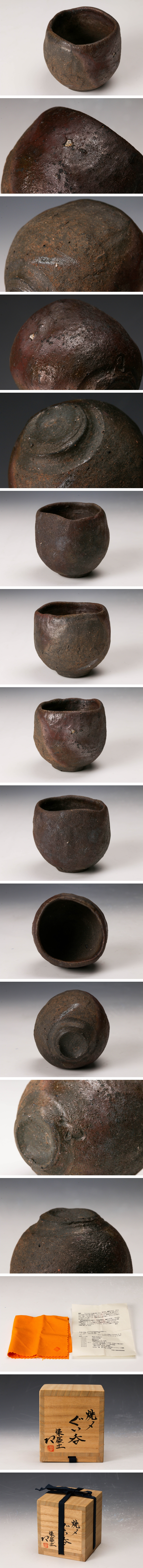 【佳香】江間廣 凡窯 染屋土焼〆ぐい呑 共箱 共布 栞 本物保証
