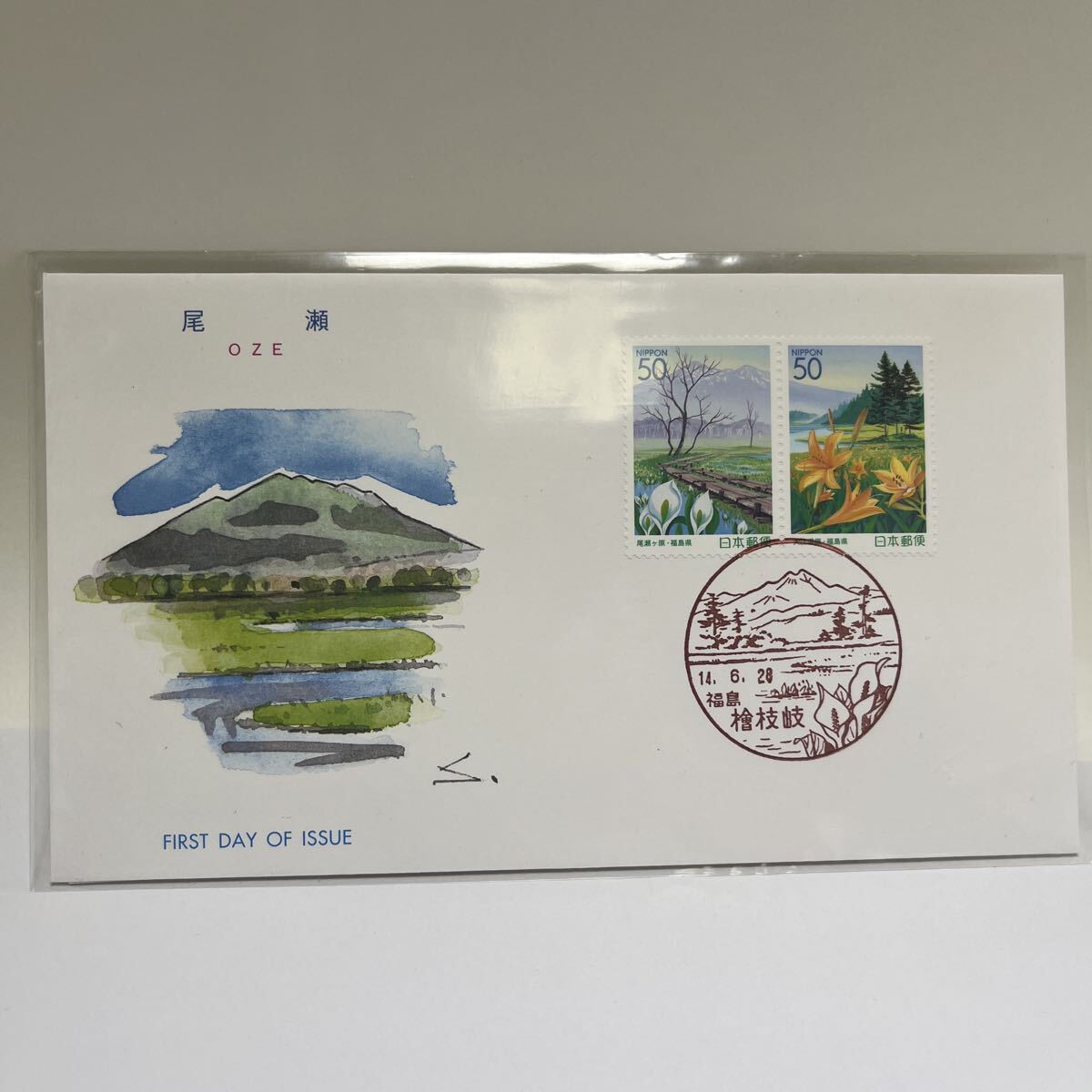 ふるさと切手 尾瀬 尾瀬ヶ原、大江湿原 平成14年6.28記念切手 初日カバー First day Cover 福島檜枝岐印  【送料110円】『o5』