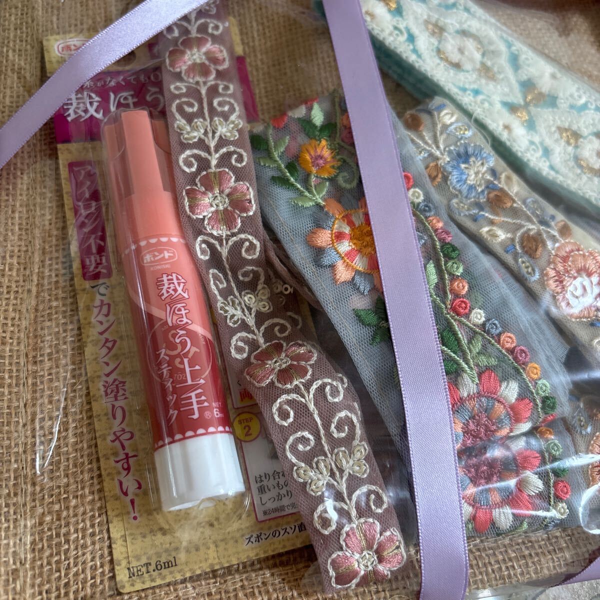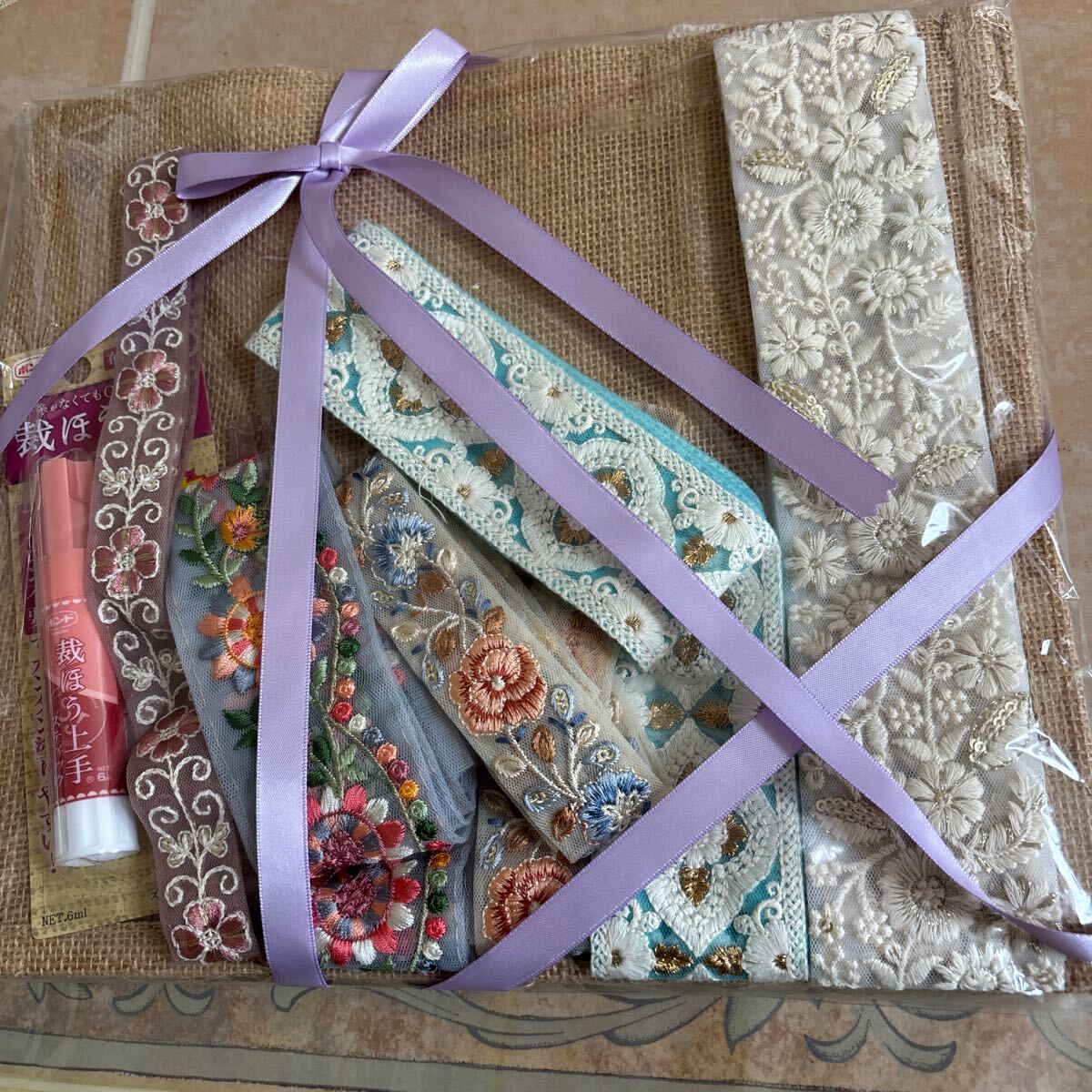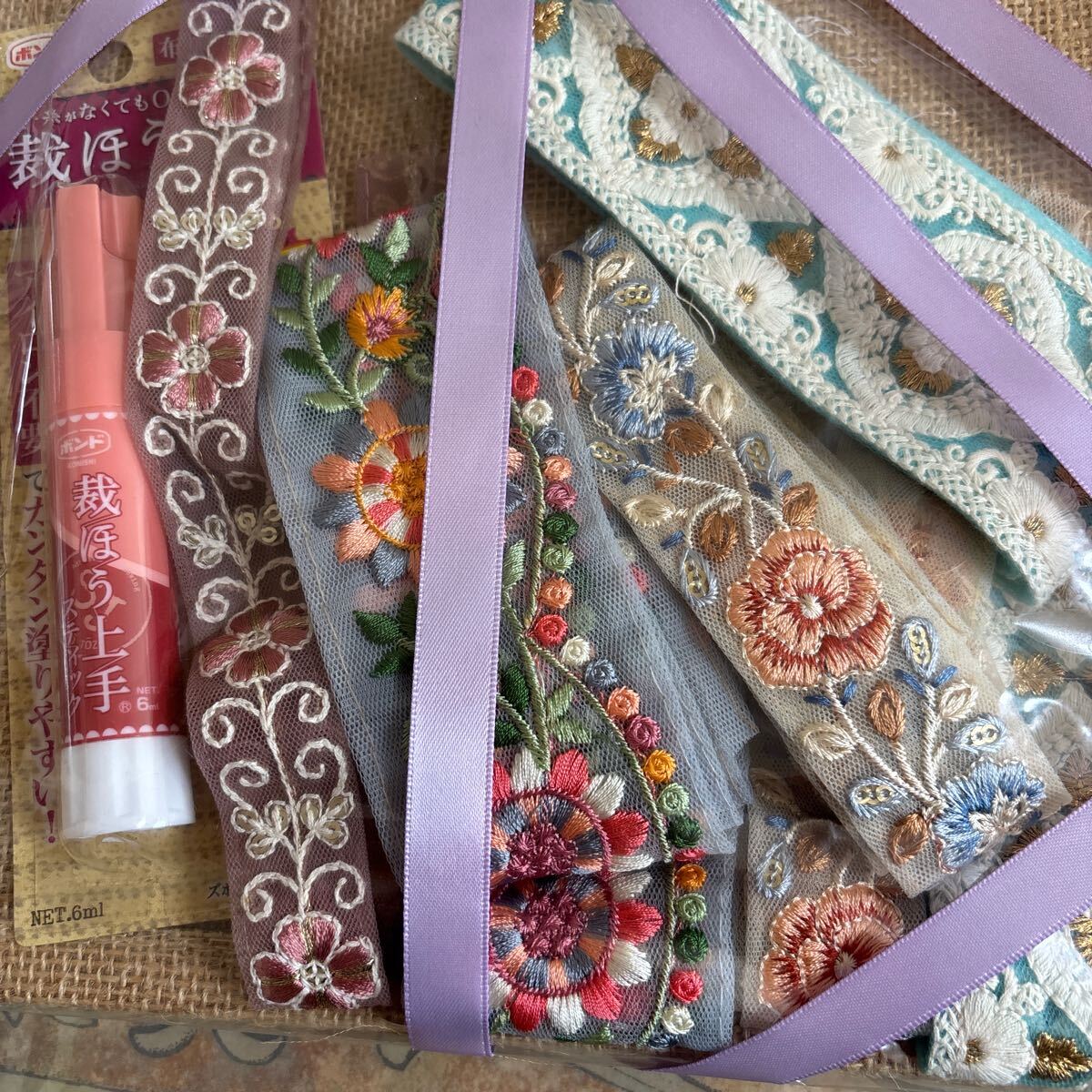 インド刺しゅうリボンで作る ジュードバッグ キット ハンドメイド リボンをバッグに張り付け 未開封