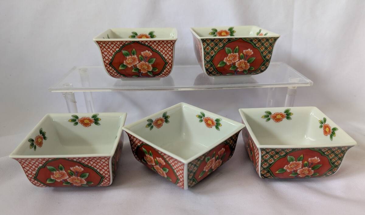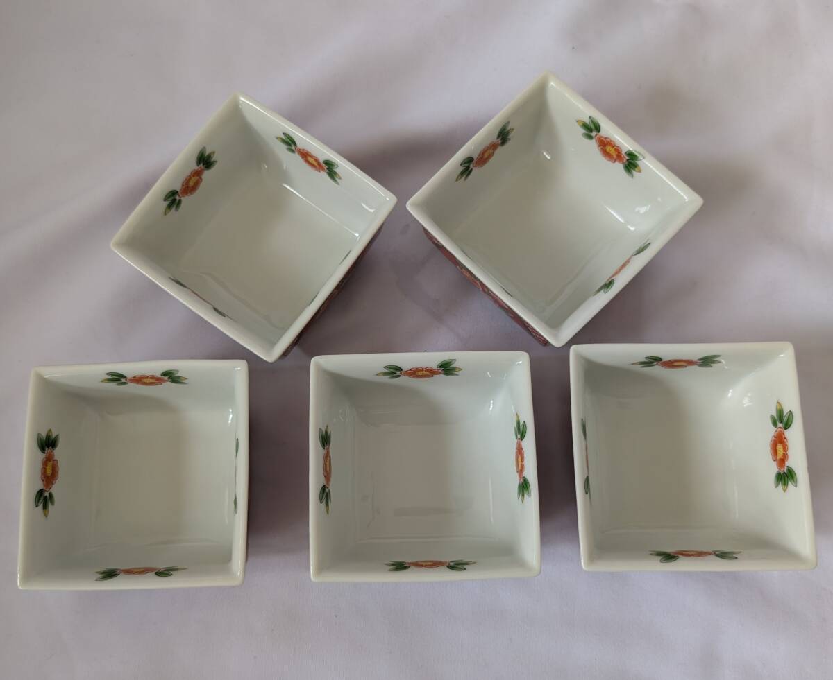 前畑陶器 庫山窯  赤絵 角小鉢 5客 小鉢揃え *和食器 正角鉢 小鉢