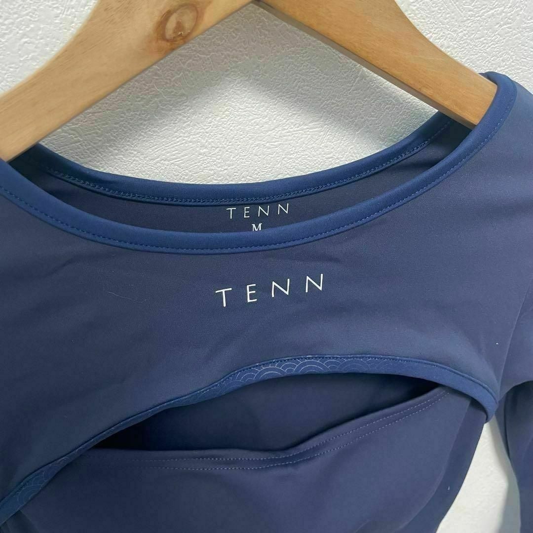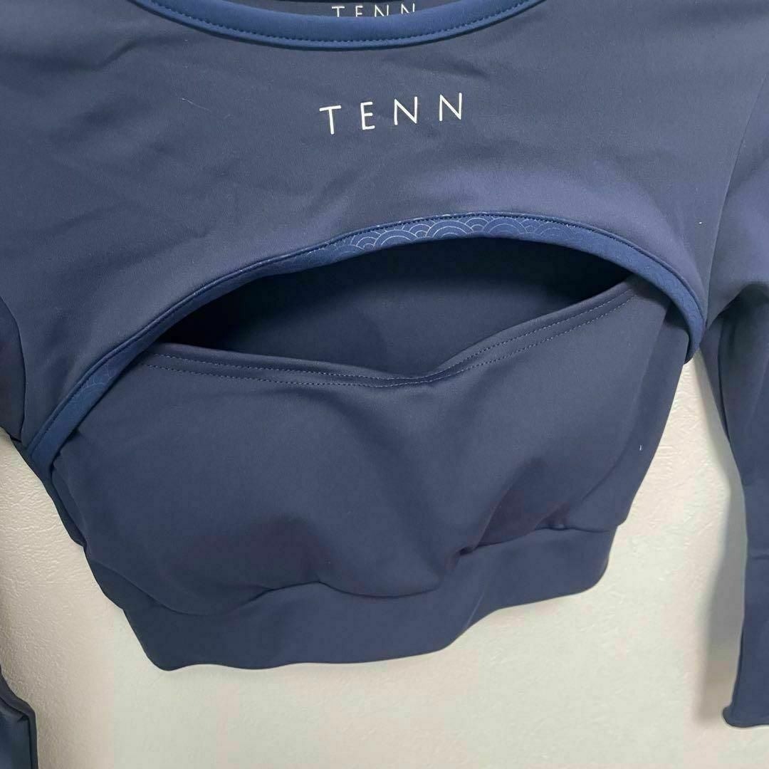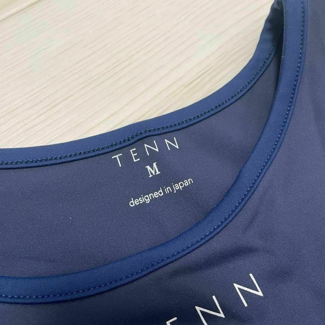 取り外し可能なパッド入り、脇肉や腕の引き締めカバー、胸元にはTENNのロゴプリント、胸元周りのカット縁に青海波のデザイン、スウェード生地で触り心地柔らかなアイテムです。