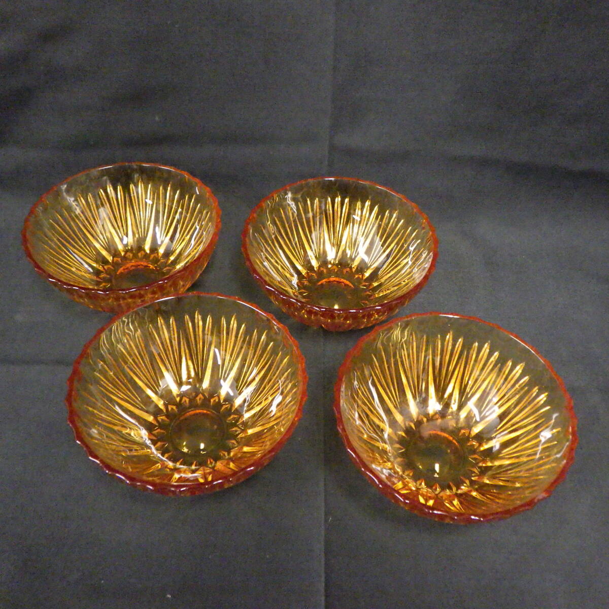 昭和 レトロ アンバーガラス 小鉢 4個セット