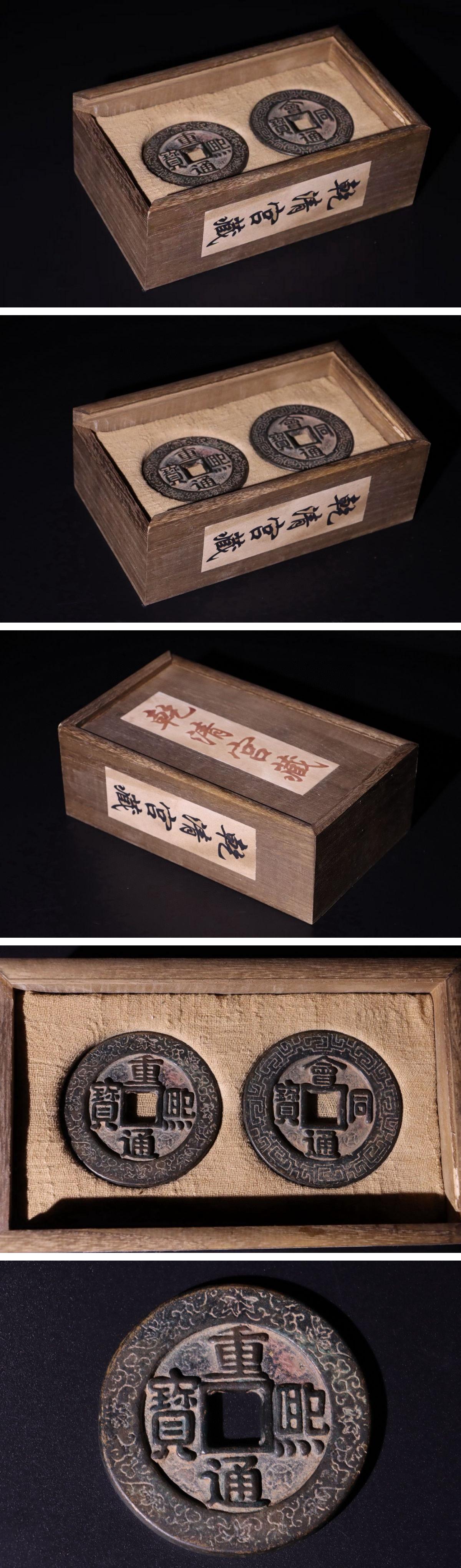 【清】某有名オークション購入 清時代 乾隆年製 宮銭 絵銭 共箱 古置物 古擺件 古美術 時代コレクション7L10-JU2