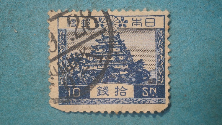 風景切手 使用済 名古屋城 10銭 こい青 大正すかし 5