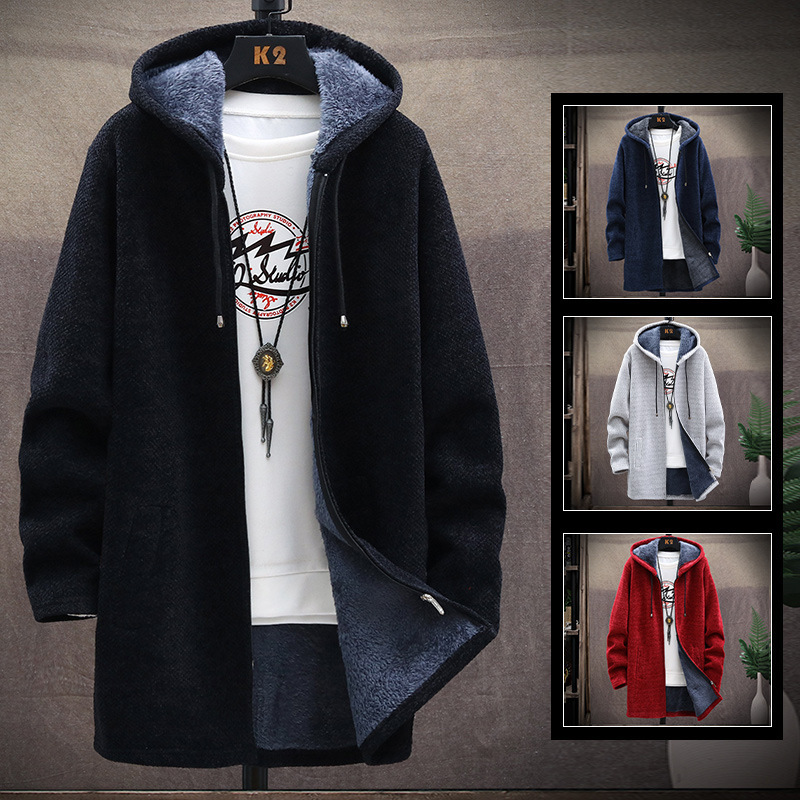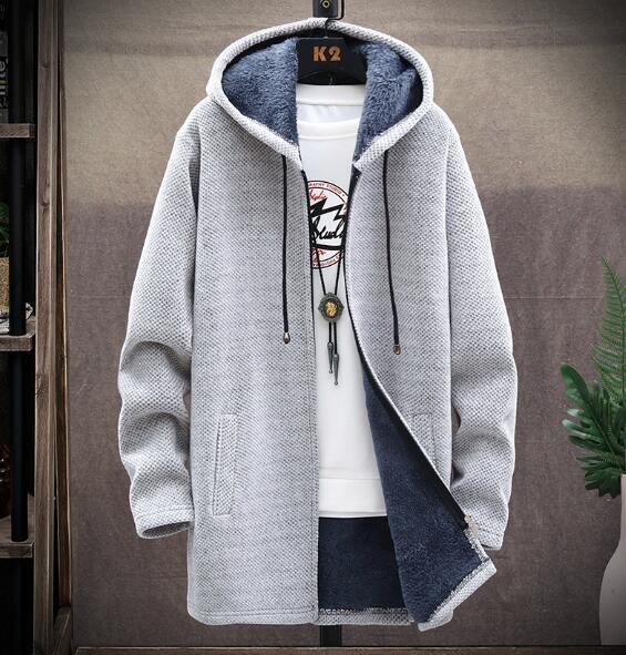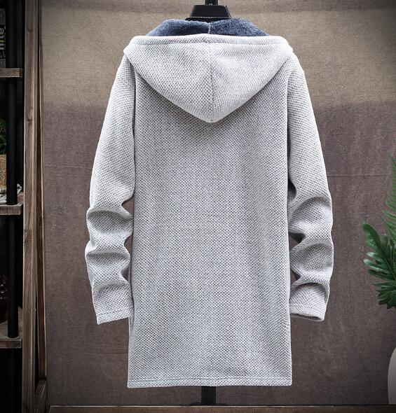 新作秋冬新品メンズカーディガンニットセーター ロング 裏起毛裏ボア 厚手コート無地 細身 フード付きパーカー 五色 M~4XL選択ライトグレー