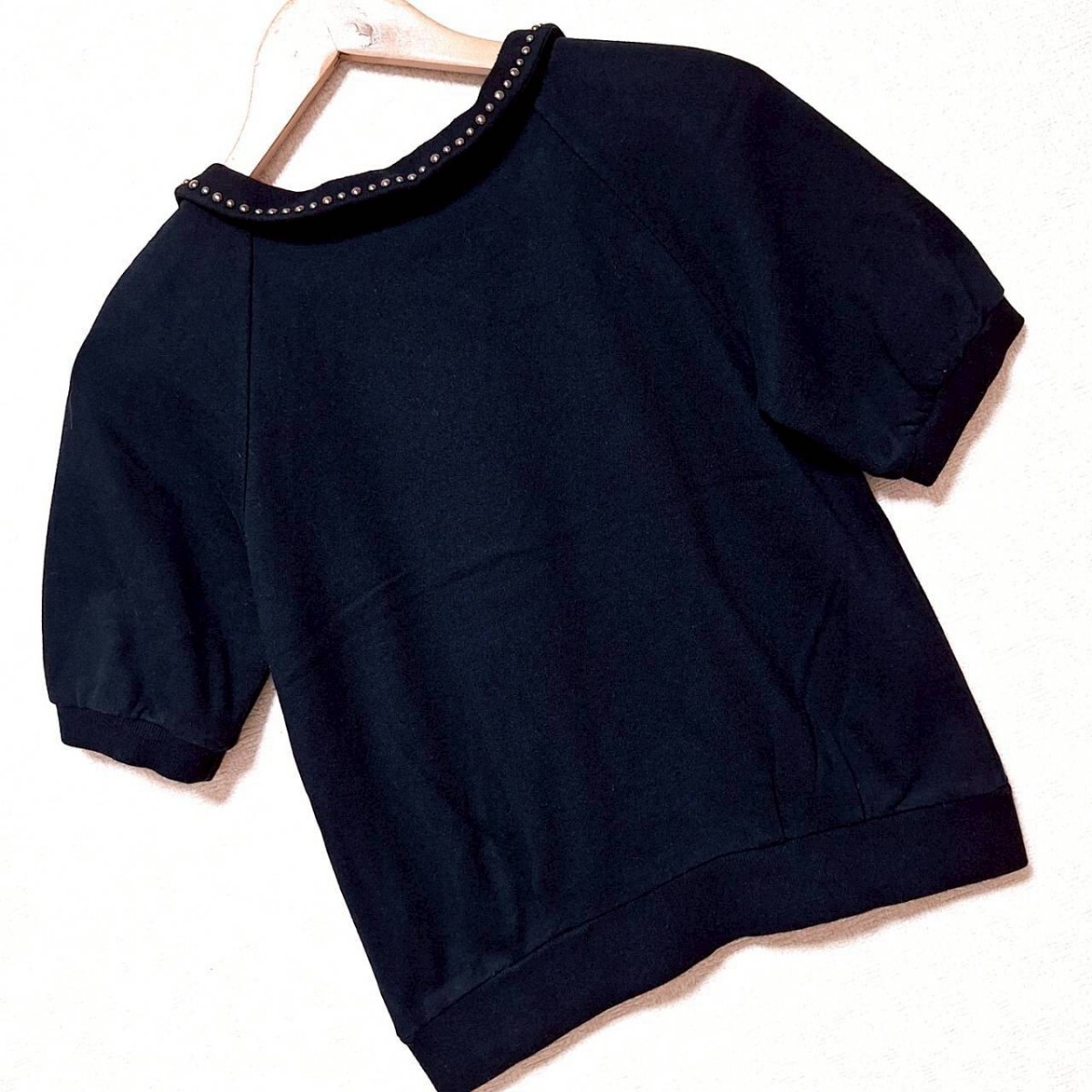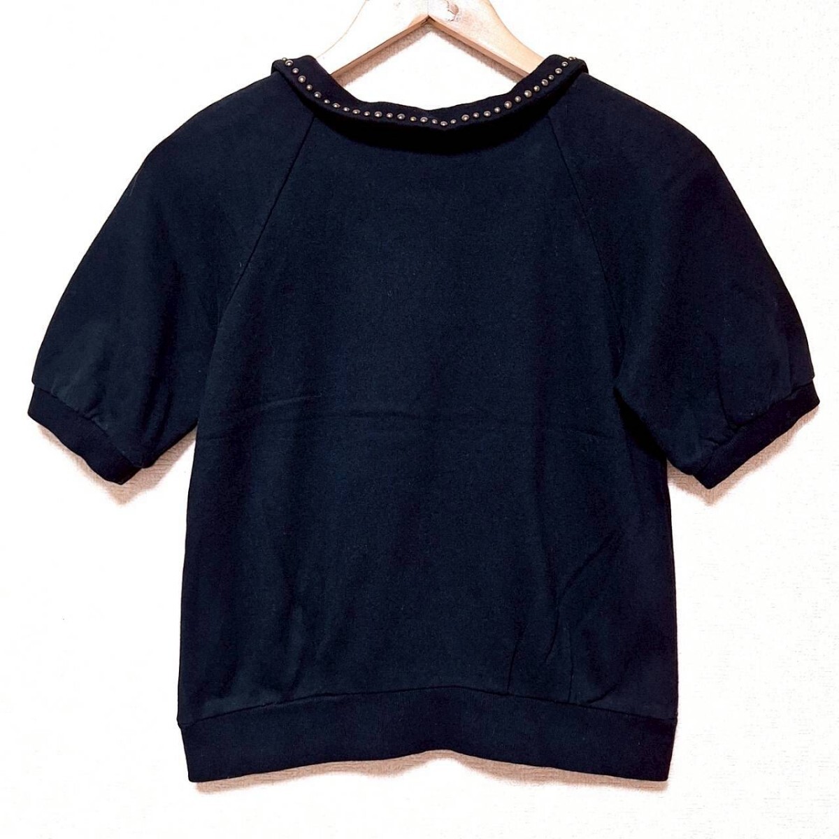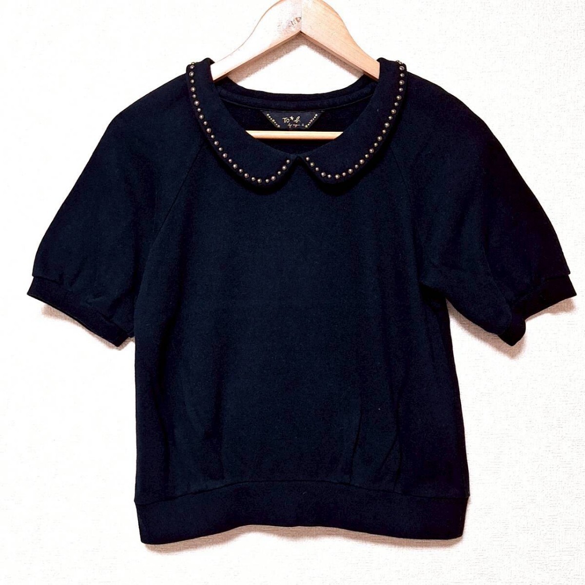 W683【TO b.by agnes b】トゥービー バイアニエス ベー パール付き半袖シャツ トップス 日本製 きれいめ ブラック レディース TU(S相当)/ee