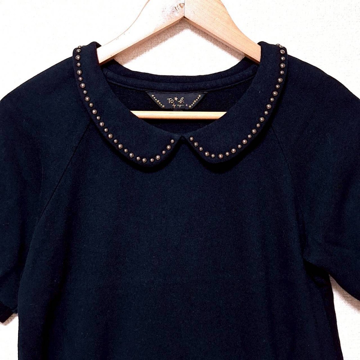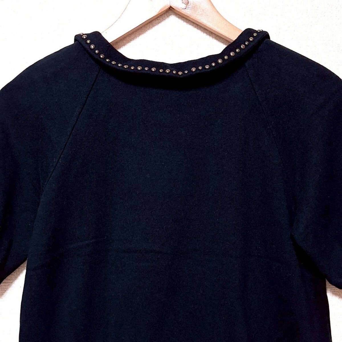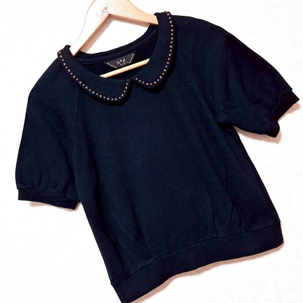 W683【TO b.by agnes b】トゥービー バイアニエス ベー パール付き半袖シャツ トップス 日本製 きれいめ ブラック レディース TU(S相当)/ee