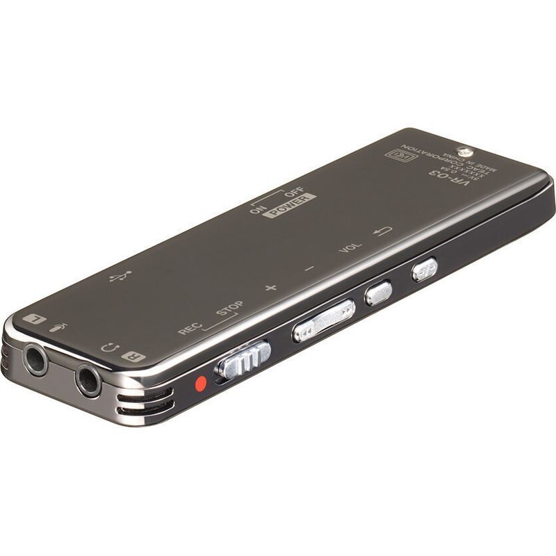 | ワイドFMチューナー搭載ボイスレコーダー 『VR-03』は、会議録音などのビジネスシーンはもちろん、学校での講義や講演から日常会話まで、録音メモに便利なレコーダーです。くっきり見やすい有機ELディスプレーを搭載。薄型でスタイリッシュな軽量コンパクトボディにステレオマイクを搭載した『VR-03』は、大切な音を残したい様々なシーンで活用できます。 本体搭載のFMチューナーでラジオ番組の聴取や録音も可能です。ワイドFM(FM補完放送)にも対応しており、AMラジオ番組もお楽しみいただけます。 スタイリッシュな薄型金属ボディ 手のひらに収まる操作性のよいサイズでスタイリッシュな外観。薄型の筐体には頑丈で高級感のある亜鉛合金を採用し、手軽に安心して持ち運びができます。 視認性の高い有機ELディスプレー 日英両言語メニュー表示に対応した、128 x 64ドットで視認性の高い有機ELディスプレーを採用。 録音モードや、本体メモリーに録音できる残時間などが表示されます。 ワンアクションでかんたん録音 『VR-03』は、軽量コンパクトボディながら操作はいたってシンプル。本体の録音スイッチをスライドするだけで、電源オフの状態でも簡単に録音できます。 さらに音声に反応して録音を自動的に開始する機能や、設定した時間で録音ファイルを自動で分割する*などの便利な機能も搭載。 録音中のスイッチ誤動作を防ぐ、キーロック機能も搭載しています。 *オフ/60分/30分 かんたん再生 録音したデータは、イヤホンやヘッドホンのほか、本体内蔵のスピーカーですぐに聴くことができます。 もちろんイヤホンやヘッドホンでのモニターも可能。 また7種類の再生イコライザー*を搭載し、音源に合わせて聴きやすい設定を選択できます。 *ノーマルを含む7種類、メモリープレーヤー機能に対応 本体に8GB録音用メモリーを内蔵 本体に8GBメモリーを内蔵し、最長約2,190時間*の音声の録音が可能、また本体のバッテリーにより、画面オフ時に最長約23時間*の駆動ができます。 ※使用可能領域は、表示容量より少なくなります *SLP(最長時間)モード時 パソコンとの接続や、文字起こしに便利な機能 録音したデータは、USB接続によりパソコンへ転送することができ、文字起こしソフトとの組み合わせで議事録作成がスムーズに行えます。 また『VR-03』をストレージとしてパソコンから簡単にファイル操作を行うことができるので、録音ファイルの共有も簡単です。 指定した箇所をくりかえし聞けるA-B間リピート再生や、聞き取りやすい速さにコントロールできる再生速度調整機能を搭載 A-B間リピート再生、再生速度調整機能 録音メモの文字起こしはもちろん、語学学習や楽器演奏、カラオケなどのボーカル練習時にも便利な機能です。 再生速度調整機能は増減SPEEDをそれぞれ8段階から設定できます。 ラジオチューナー搭載 FMラジオ用チューナーを搭載し、番組をVR-03で録音*することができます。 普段からよく聴くラジオ局を40局までプリセット可能。 さらにワイドFM(FM補完放送)対応のAMラジオ番組の聴取や録音も可能です。 *MP3のみ ・FM音声はモノラルになります。 外部マイクの接続が可能 外部入力端子はプラグインパワー対応で、市販のステレオピンマイクなどの外部マイクを接続することが可能です。 充電式バッテリー内蔵 リチウムイオンバッテリーを内蔵し最長時間モードで約20時間以上*の継続録音が可能。 充電式バッテリーは本体のmicro-B typeのUSB端子から充電が可能です。 *SLP(最長時間)モード,画面表示オフの場合 充電時も録音が可能 『VR-03』は、オプションのACアダプター(PS-P520U)や外付けバッテリーパック(BP-6AA)、モバイルバッテリーによる充電をしながら録音する事が可能です。 ※パソコンとの接続中は、充電とストレージ機能が優先され再生、録音は動作しません。 日本語、英語メニュー表示 日本語メニューのほか、英語にも対応、お好みの言語でご使用いただけます。 外形寸法:32.6(W)x 99.6(H)x 10.3(D)mm 質量:73g 付属品:イヤホン(FMアンテナ兼用)、USBケーブル(長さ50cm)、取扱説明書(保証書付き) |