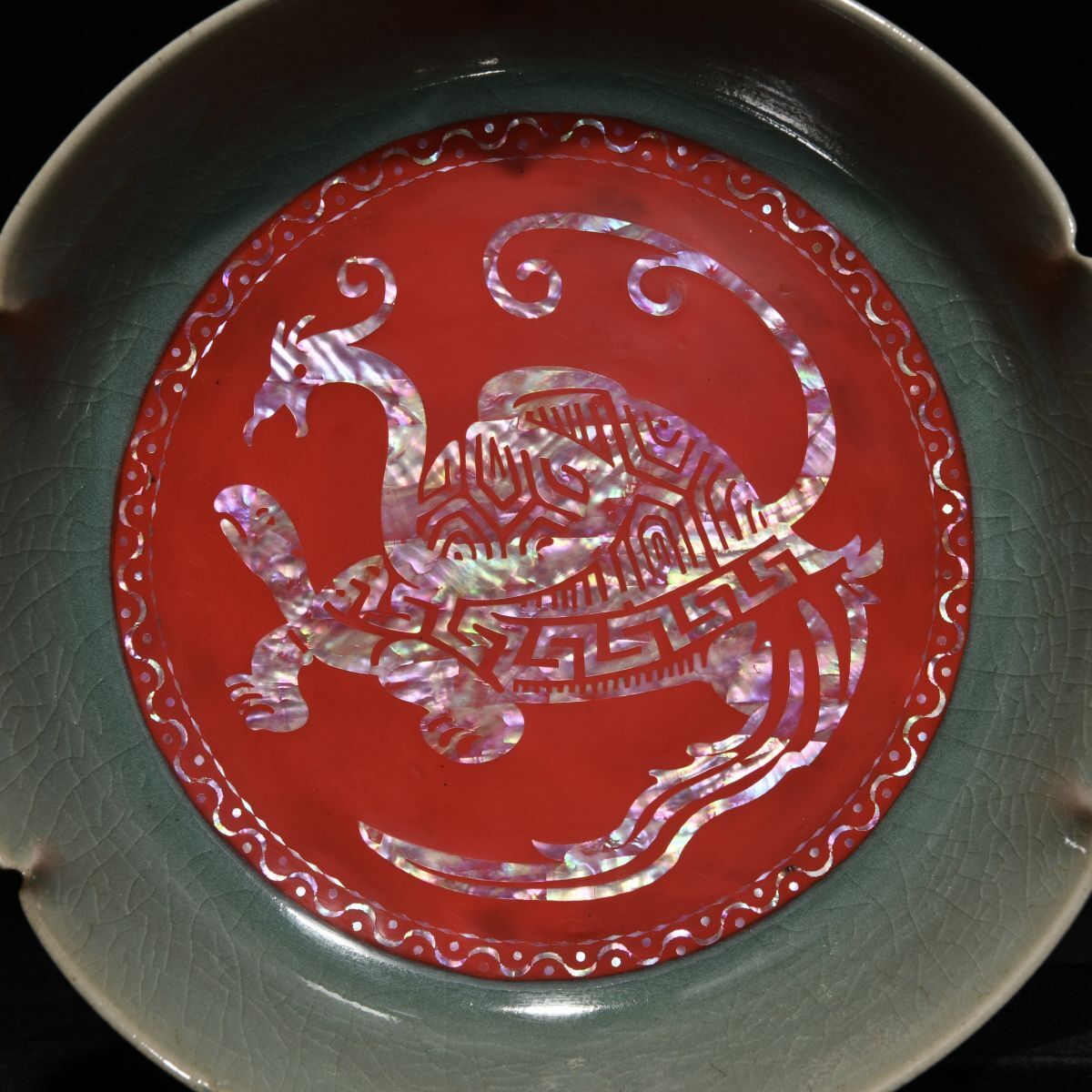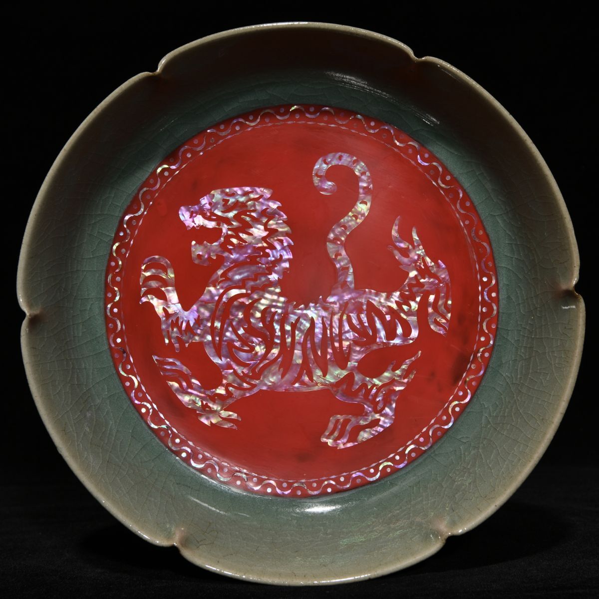 【永】宋時代 汝窯 嵌め螺鈿 四獸紋 葵口洗 古陶磁器 陶芸 皿 中国陶瓷器 唐瓷 置物擺件 古美術品 古賞物 収集 旧家蔵出 中国唐物 A212