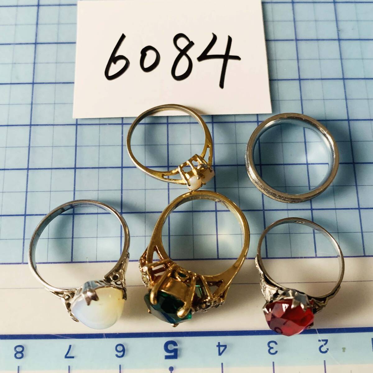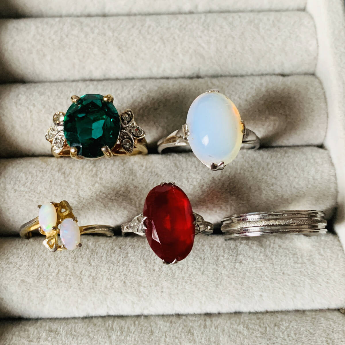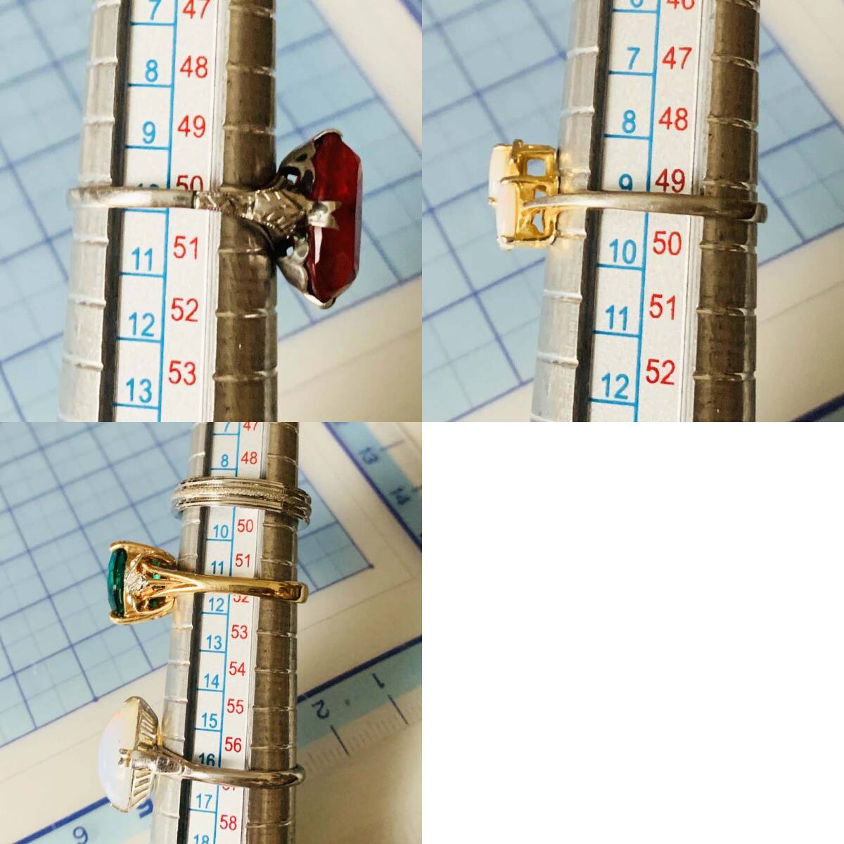 各種指輪リング ルビー風 エメラルド風 天然オパール 刻印ありなど 大量 おまとめ売り お得5点セット No.6084