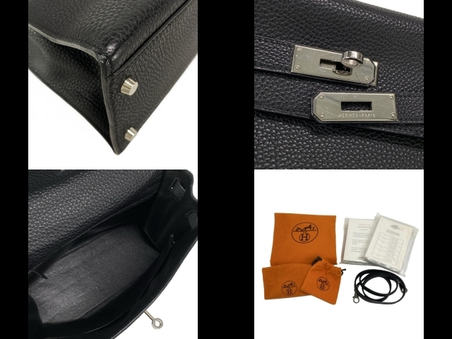 エルメス HERMES ハンドバッグ ケリー32 黒 外縫い/シルバー金具 □H バッグ