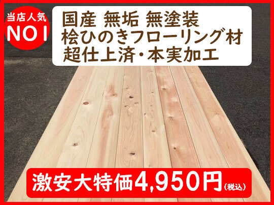 ■商品名 【超激安】 国産 無垢 桧 ひのき 本実 A品 節物 超仕上済 フローリング 床材