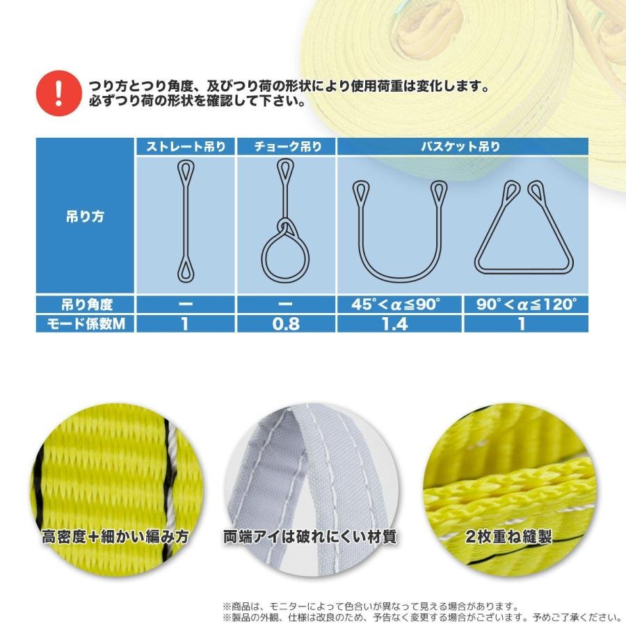 | 商品の詳細 | ■商品詳細 玉掛作業・吊り作業にどうぞ!本格仕様のベルトスリングです。 強度、耐荷、耐久性に優れいているから安全性抜群! プレス用金型・大型機械・建築資材・木材・大型電化製品 ・家具・植木庭木・ 土管・ヒューム管・大口径鋼管・鍛造品 ・製紙ロール・貿易輸送・小型船 ・船内や湾岸の荷役などの吊り上げ、移動、運送、運搬など様々な作業にお使いください。 ・両端アイタイプです。 ベルトサイズ(約):長8m×幅75mm 材質:ポリエステル100% 最大使用荷重(能力): ストレート吊:3000kg PL保険加入商品 欧州CE規格+GS&TUVマーク取得商品 | |
