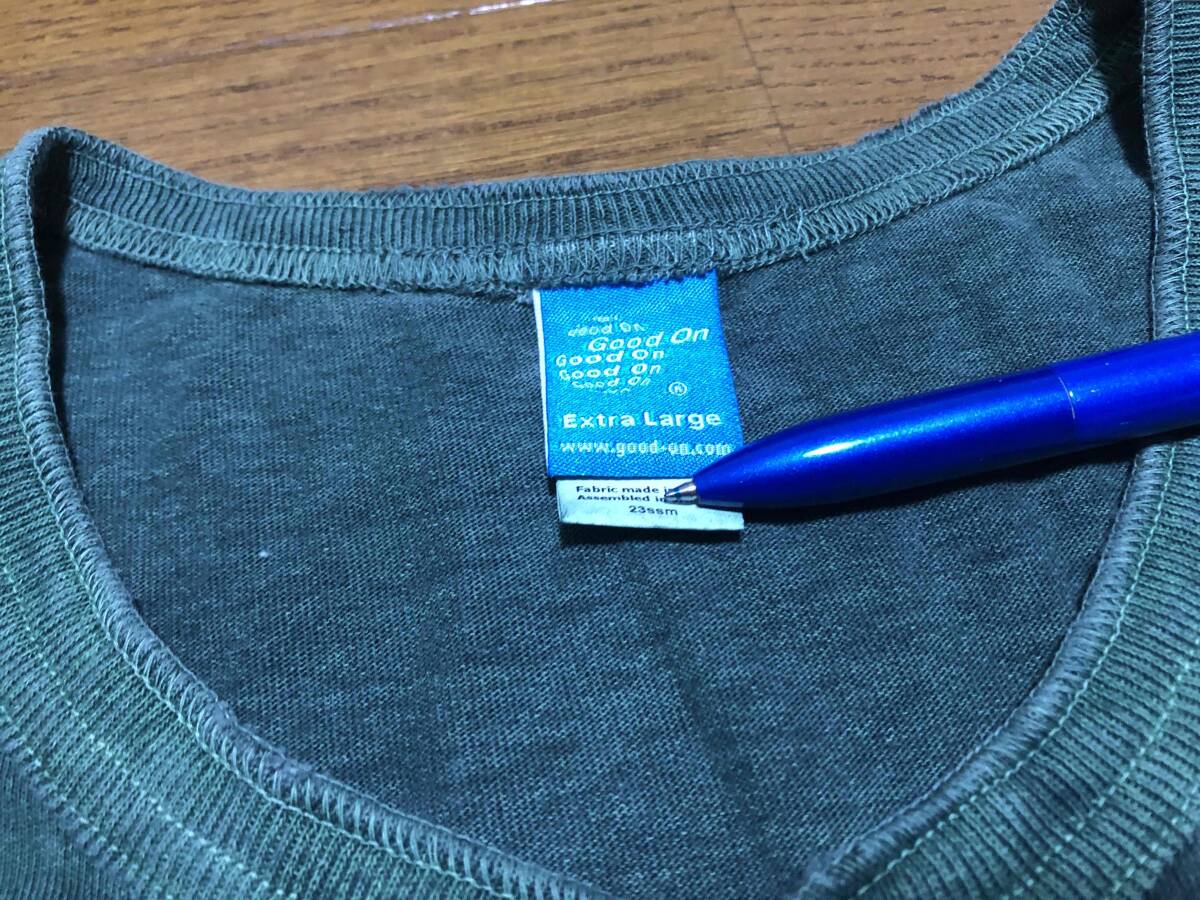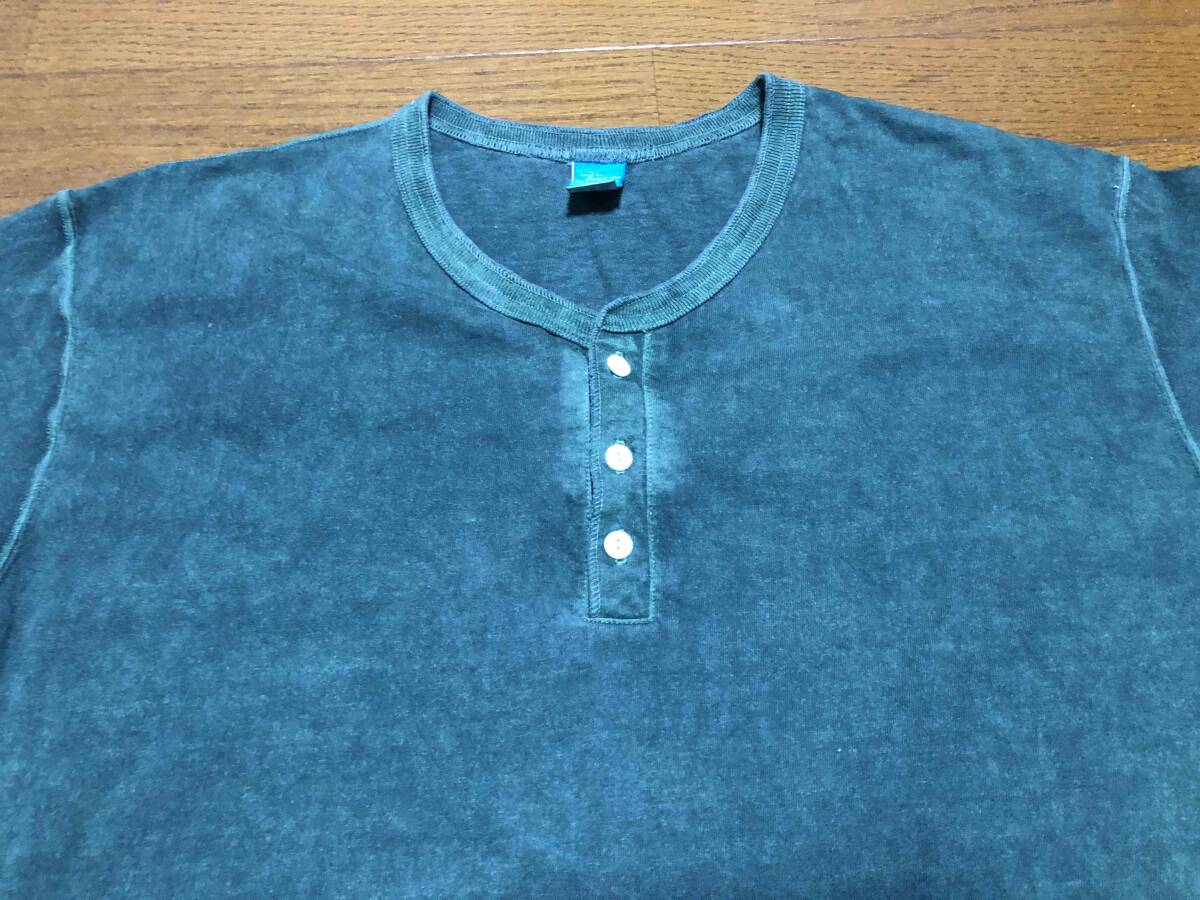 ★即決★Good On グッドオン★ヘンリーネックTシャツ★後染めグリーン★XL★ヘビーウエイト★ピグメント染★ビッグシルエット★送料230円