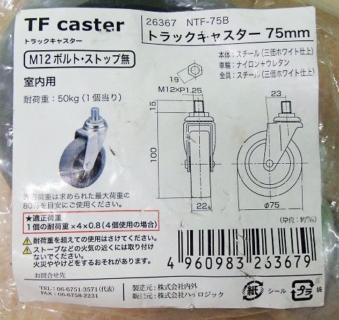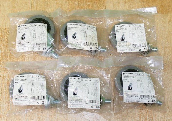 未使用 6個セット トラックキャスター M12ボルト・ストップ無し 75mm 26367 NTF-75B 許容荷重50kg 業者向け 車輪 アウトレット