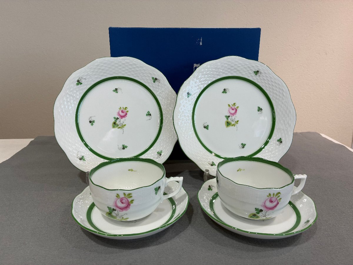 【HEREND】 ヘレンド 【ウィーンの薔薇】 カップ&ソーサー&ケーキ皿 トリオセット 各2pcs 陶器 食器 茶器 SY02-GQY