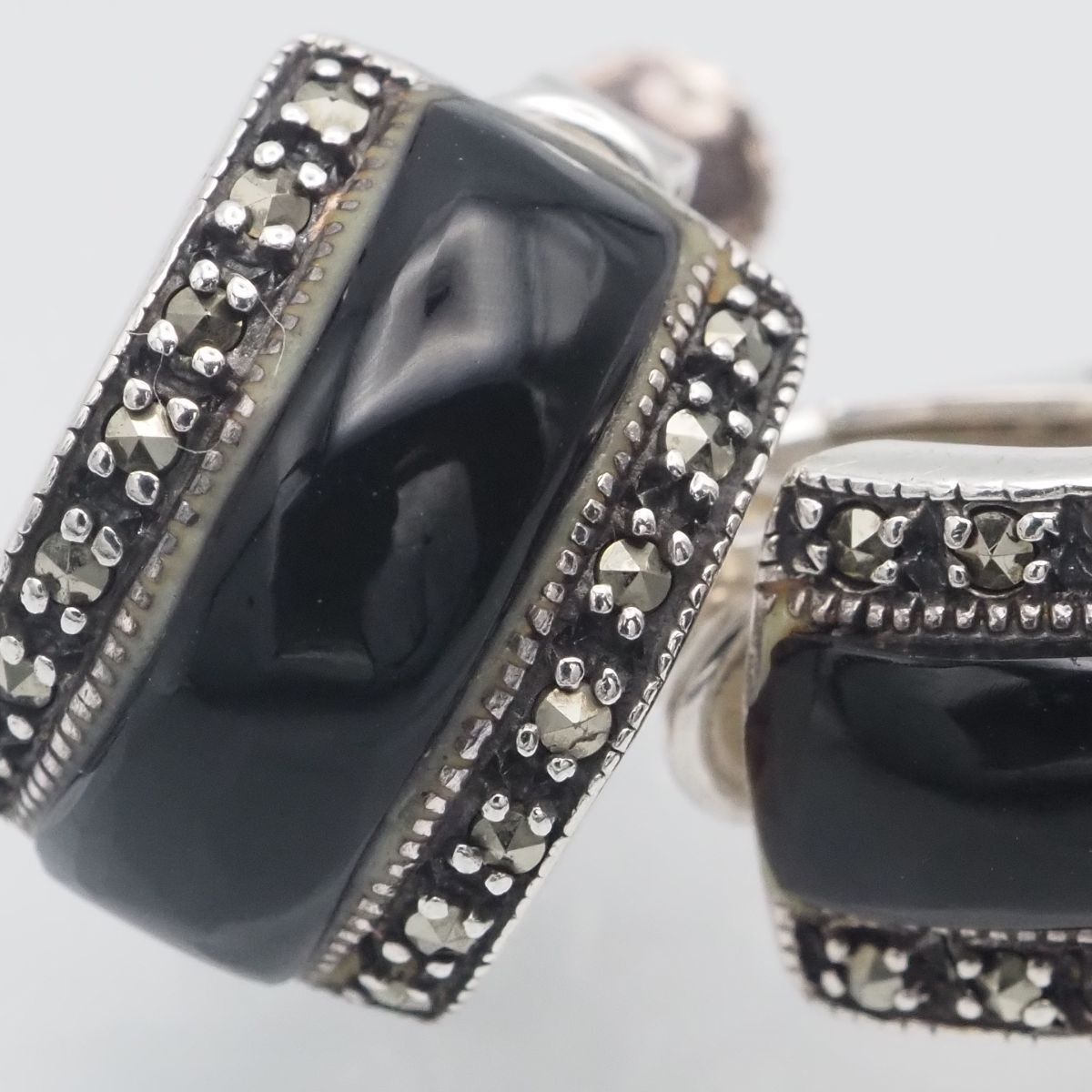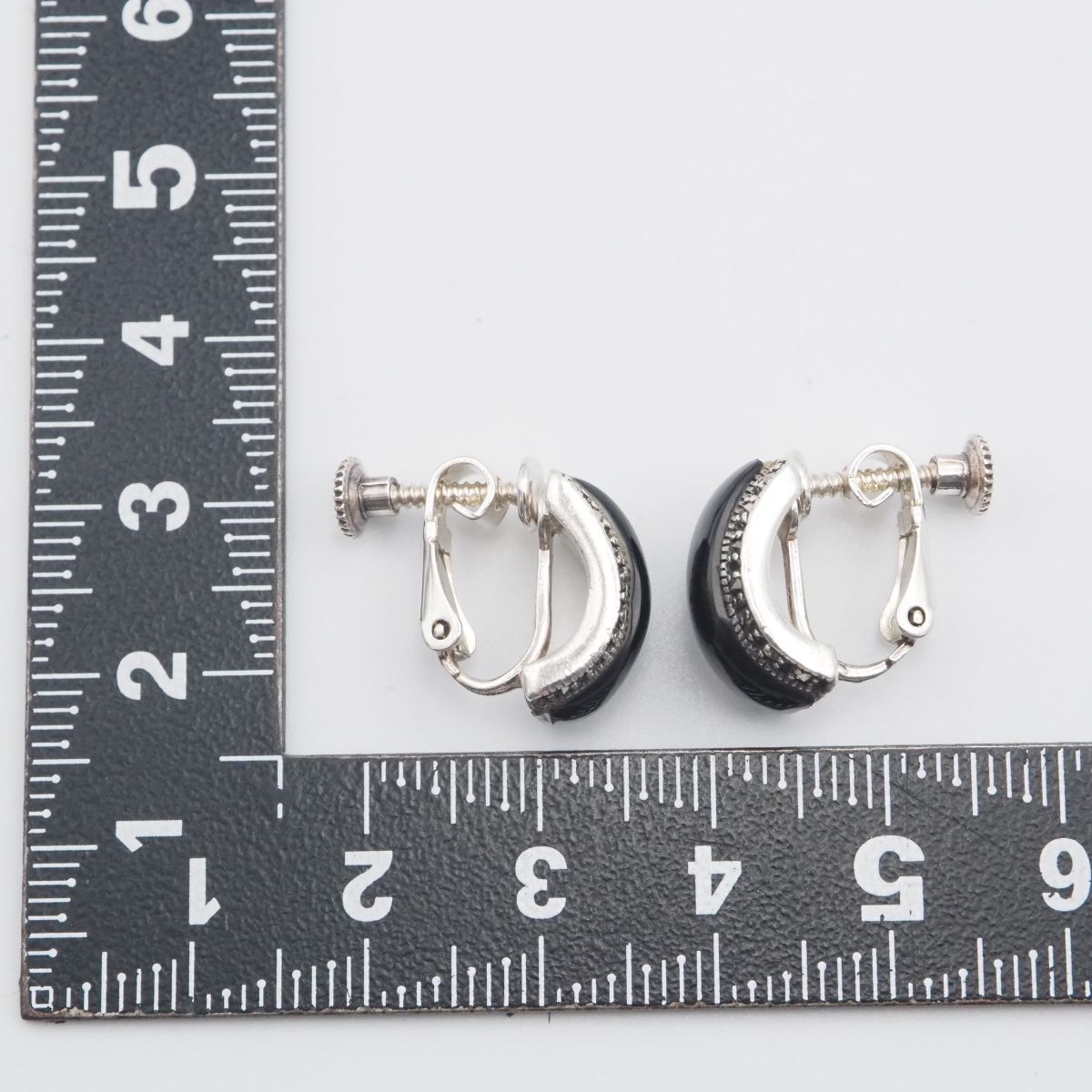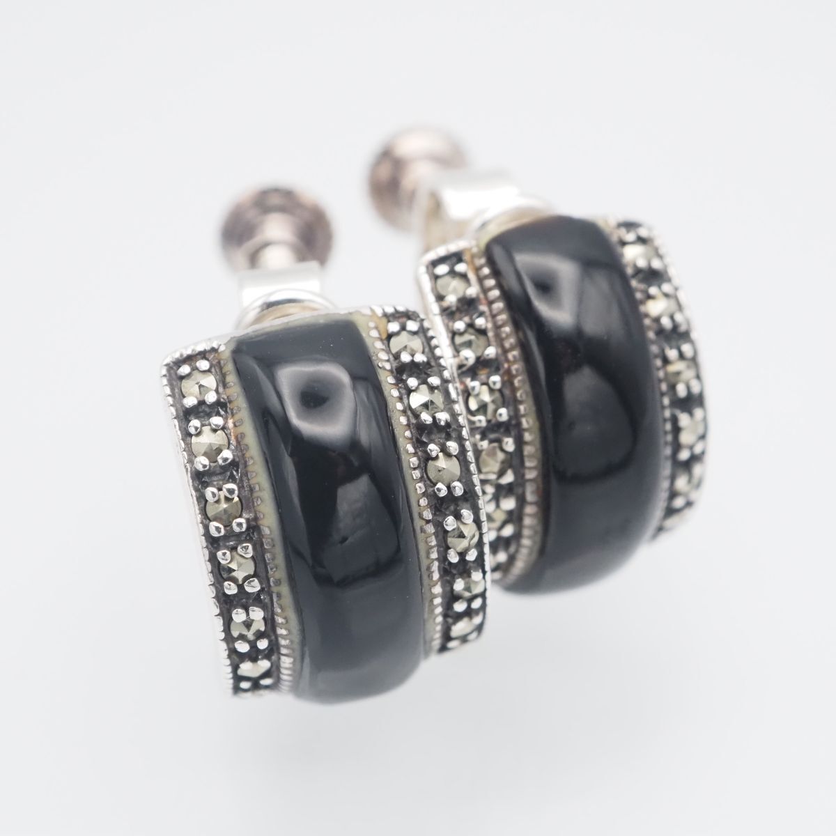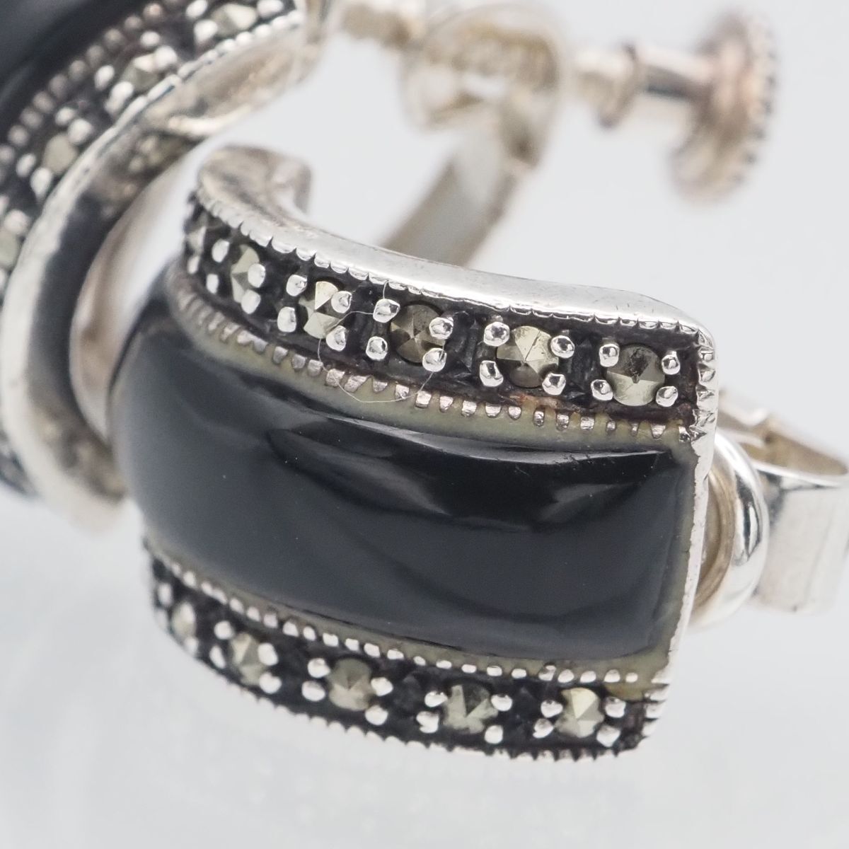 G858 オニキス マーカサイト マルカジット SILVER925刻印 イヤリング デザイン シルバー ヴィンテージ