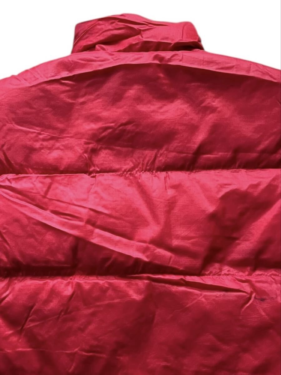 used、アメリカ製、お色は赤、素材はナイロン、中綿ダウン系、サイズS、フロントスナップボタン。