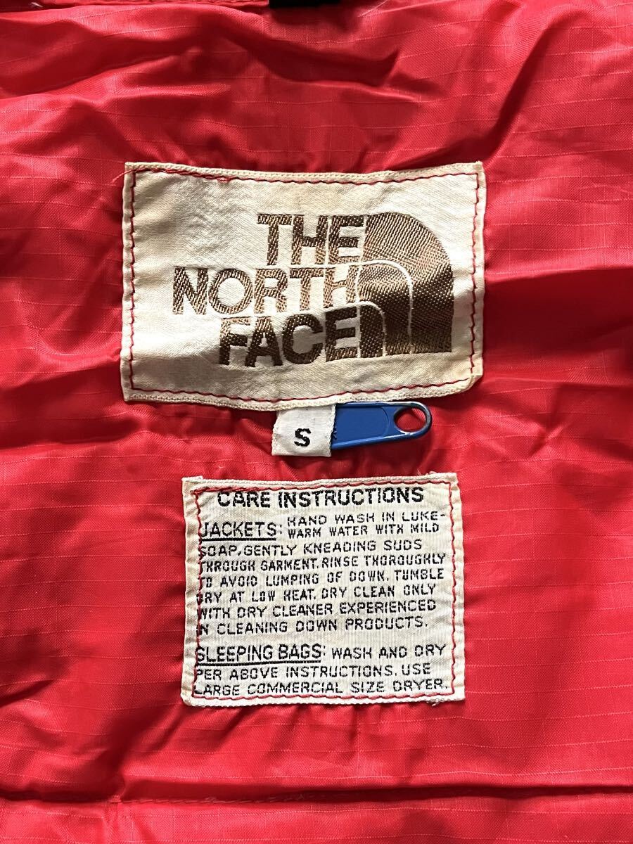 ●●vintage 1970's us製 THE NORTH FACE ノースフェイス 茶タグ ダウンベスト サイズS 赤●●