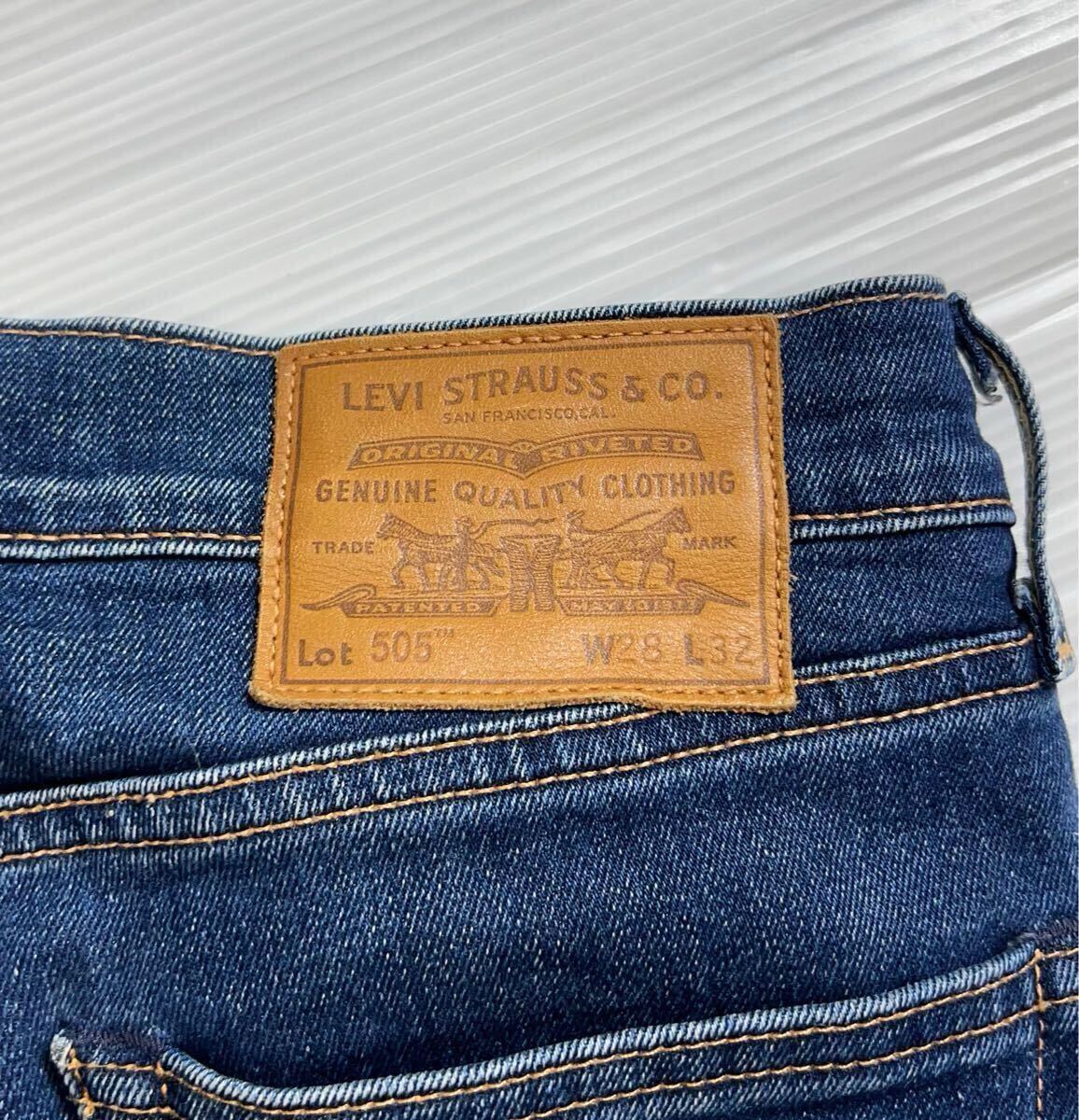 505 ロゴ レザー パッチ ビッグE 激シブ色落ち ストレッチ素材 インディゴデニムになり大変格好良くお洒落です