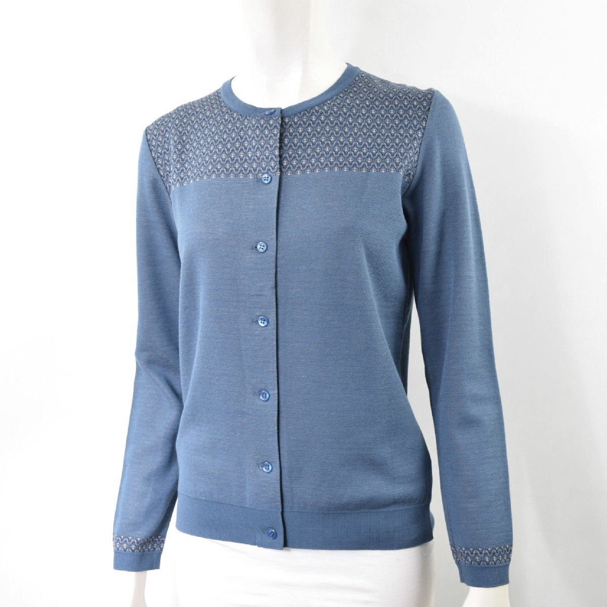 3014-25R0071★キース KEITH 未使用タグ付き★フェアアイル柄 2way 柔らかコットンカーディガン 38 くすみブルー 青系 定価17600円