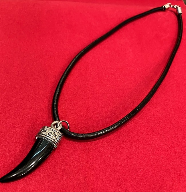 ゲリラ市♪エスニック ツノ 牙 黒 ブラック 本革チョーカーネックレス 男女兼用♪ 251022