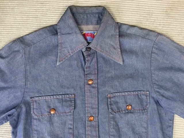 | 説明 | 70年代頃の暴れ馬タグ ラングラーのデニムシャツです 襟長、カフスはスナップボタンでジャケット風に合わせられます 色落ちほとんどなく今後の色落ちも楽しめます 開閉はフルスナップボタン |
