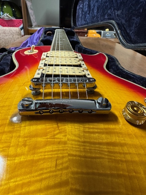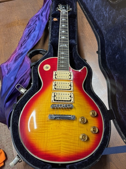 『KISS Ace Frehley Signature 』Gibson Les Paul Custom '97 ギブソンのキッス エース・フレーリーモデル レスポールカスタムになります。中古で購入してコレクションとして持っていました。湿度管理した部屋で保管し、定期的にメンテナンスもしておりました。最後は、昨年9月頃にギター工房にてプロの方にメンテナンスしております。その際、ピックアップ、PUスイッチ、ボリュームの点検&リペアもしております。作動ノイズもなく正常に機能します。ホディーに酷いうち傷などもありませんが、小傷や汚れ程度はあります。フレットは目立つ凹みなどもなく8~9割程度、ネックに曲がりなどもありません。ピックガード付属しません。サイン入りのギブソンハードケース(多少傷あり)付き。昨年、メンテナンスして以来そのまま保管していますが特に弾く機会もないので大好きだったスペースマン愛機を引き継いでいただける方にお譲りいたします。売り切りスタートです!!