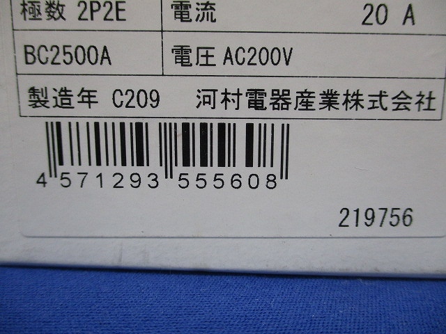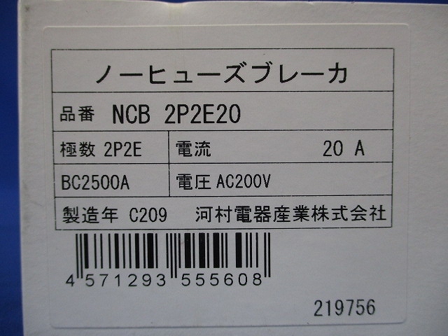 ノーヒューズブレーカ 2P2E 20A 河村電器産業 NCB2P2E20