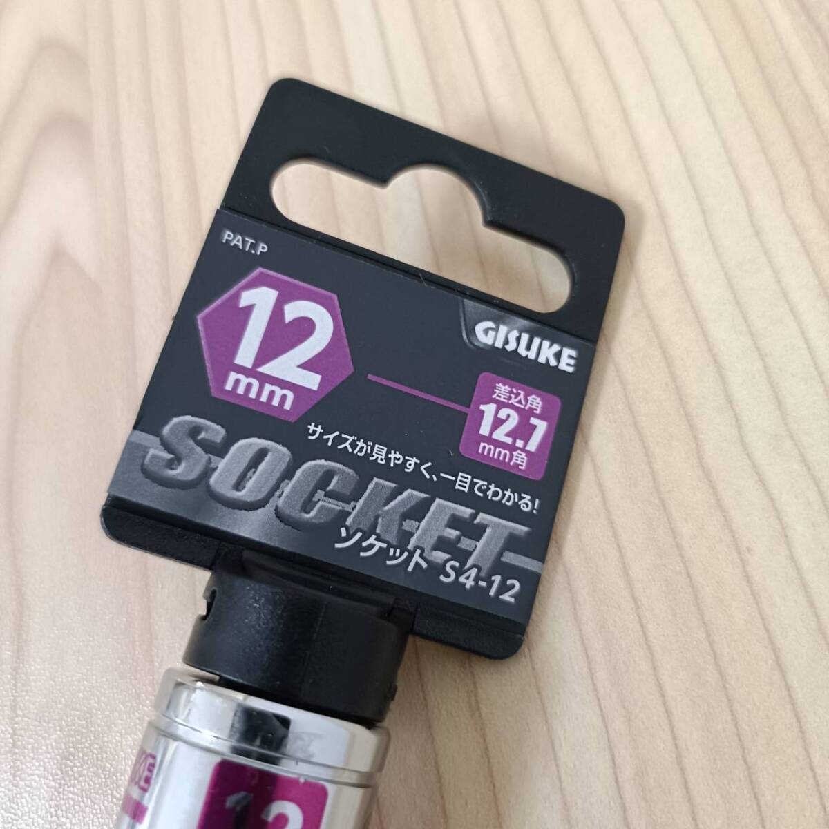 ラチェットハンドルやスピンナーハンドルに取り付けて使用する、GISUKE製のスタンダードな12mmソケットです。