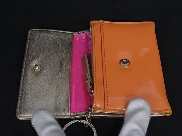 ■極美品■ kate spade ケイトスペード パテントレザー フラグメントケース コインケース カードケース レディース オレンジ系 DI7728