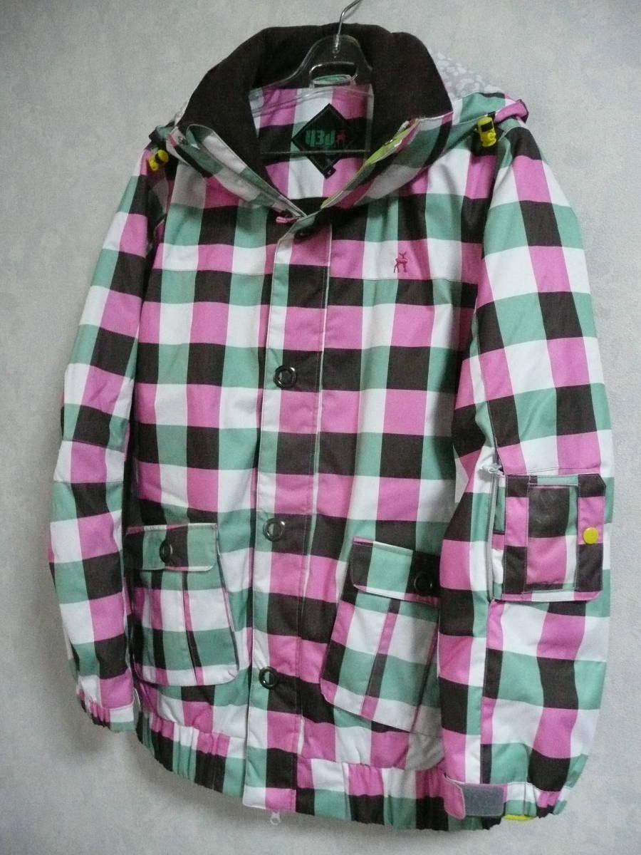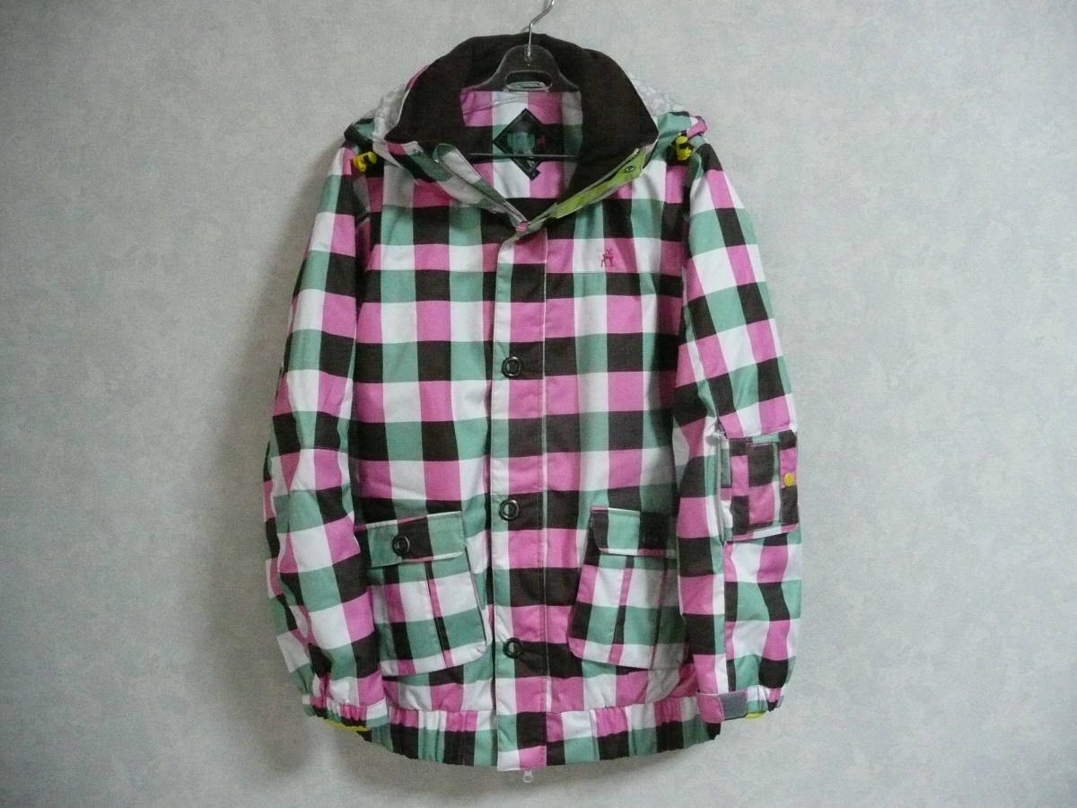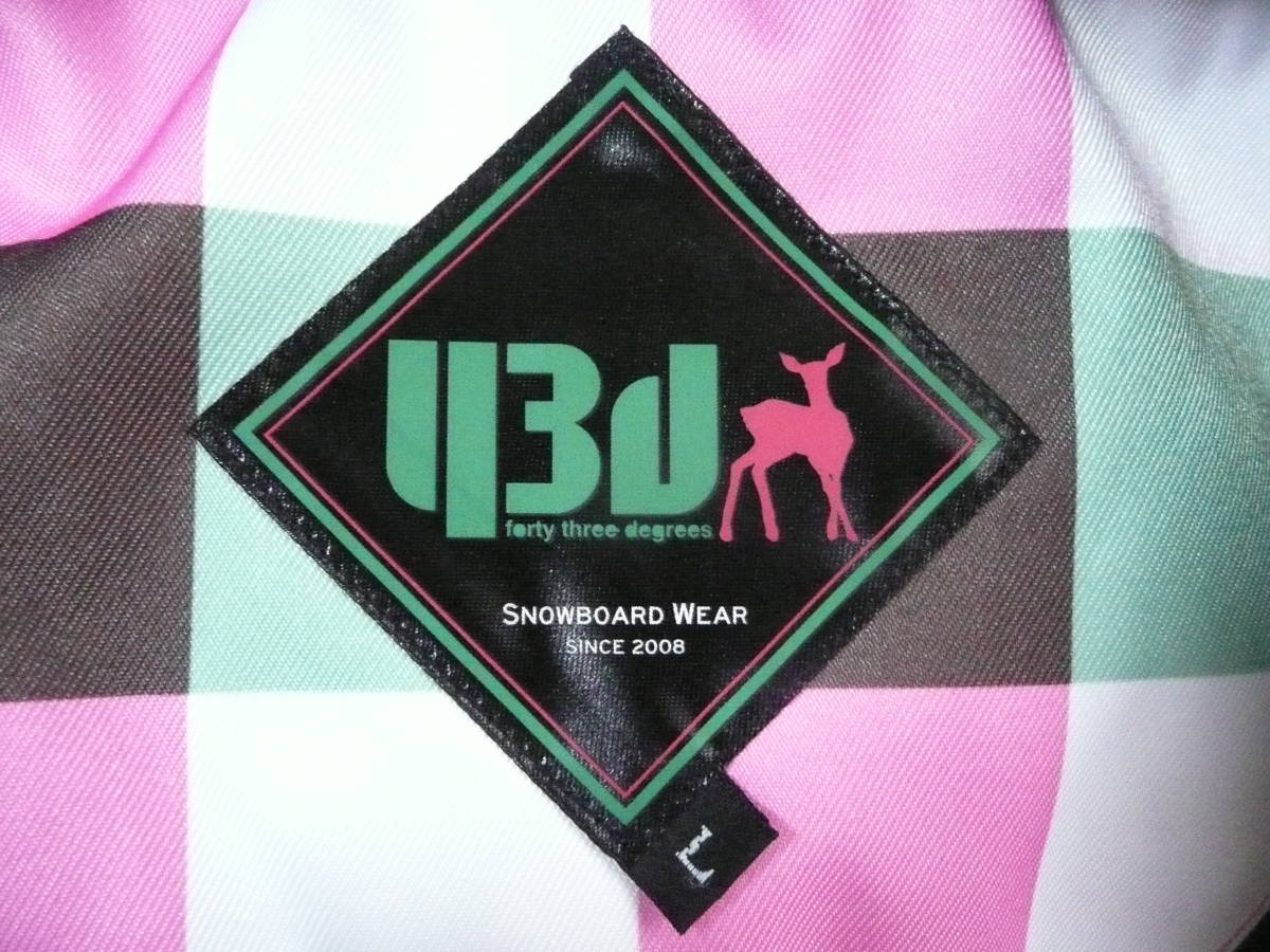 [極上] FOUR-SEASONS 43degrees レディースL 中綿入スノボジャケット スノーボードトップス ピンク格子 身長160-170cm スキー ウインター