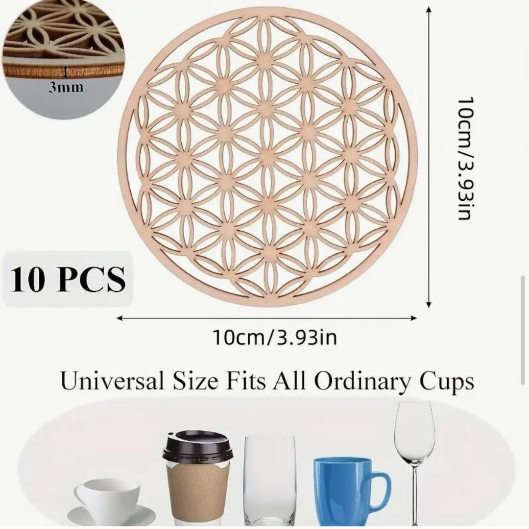 生命の樹デザインが施された木製コースターのセット。壁掛け、飾り、素材にも使えます。