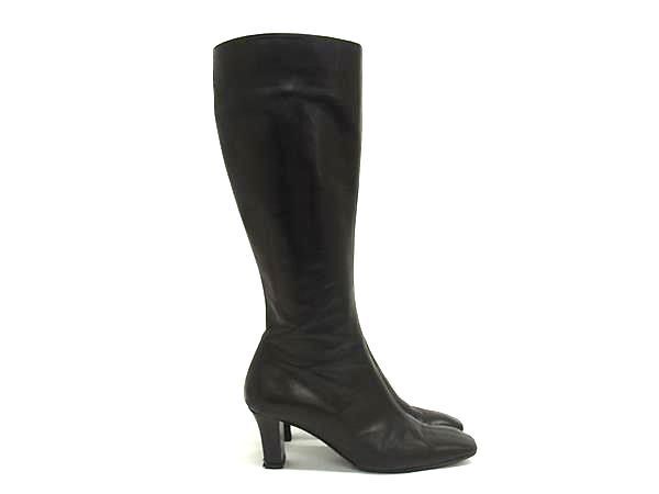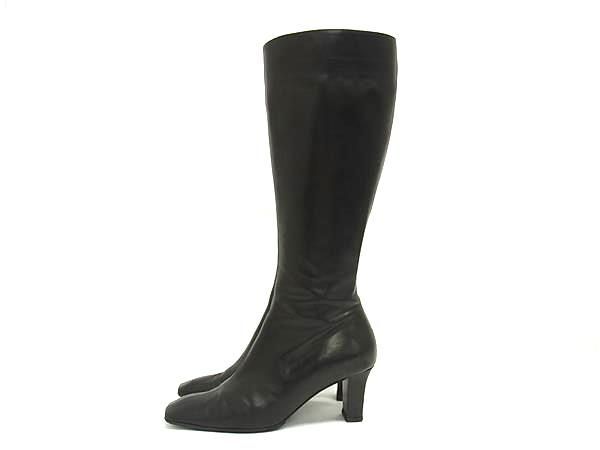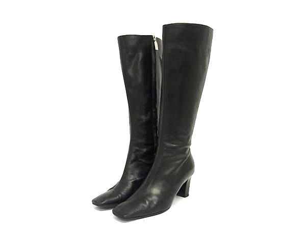 BRUNOMAGLI ブルーノマリ レザー ヒール ロングブーツ 表記サイズ36 1/2 (約23.5cm) 靴 シューズ レディース ブラック系 DF8587