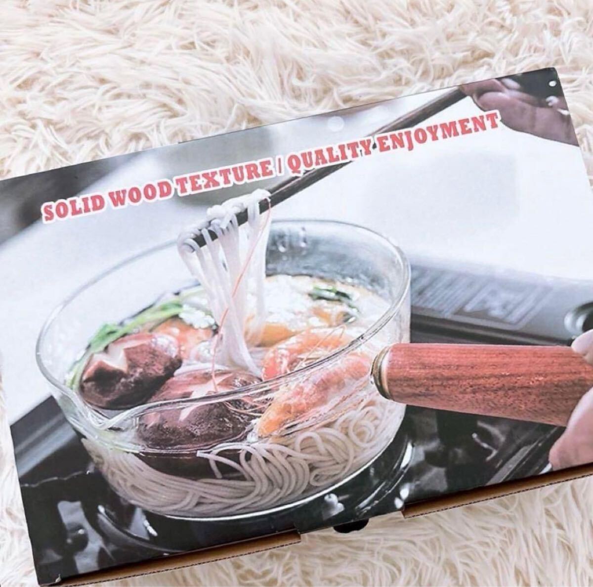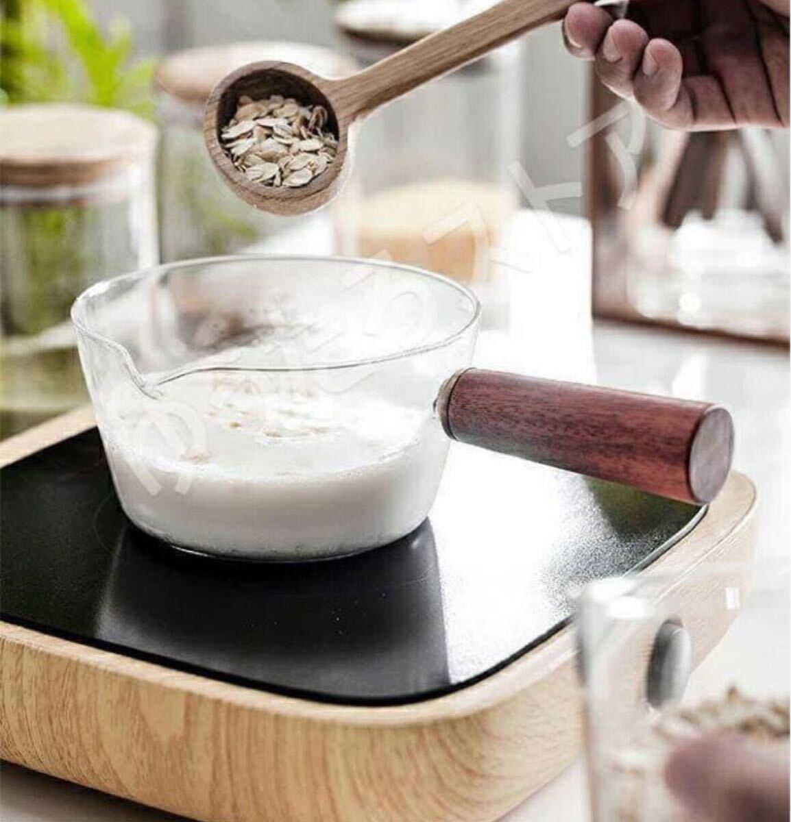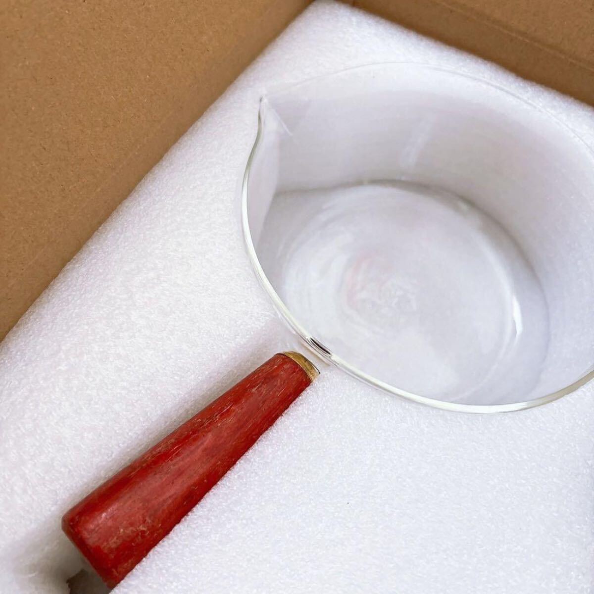 コンパクトでおしゃれなデザインのガラス製ミルクパンです。