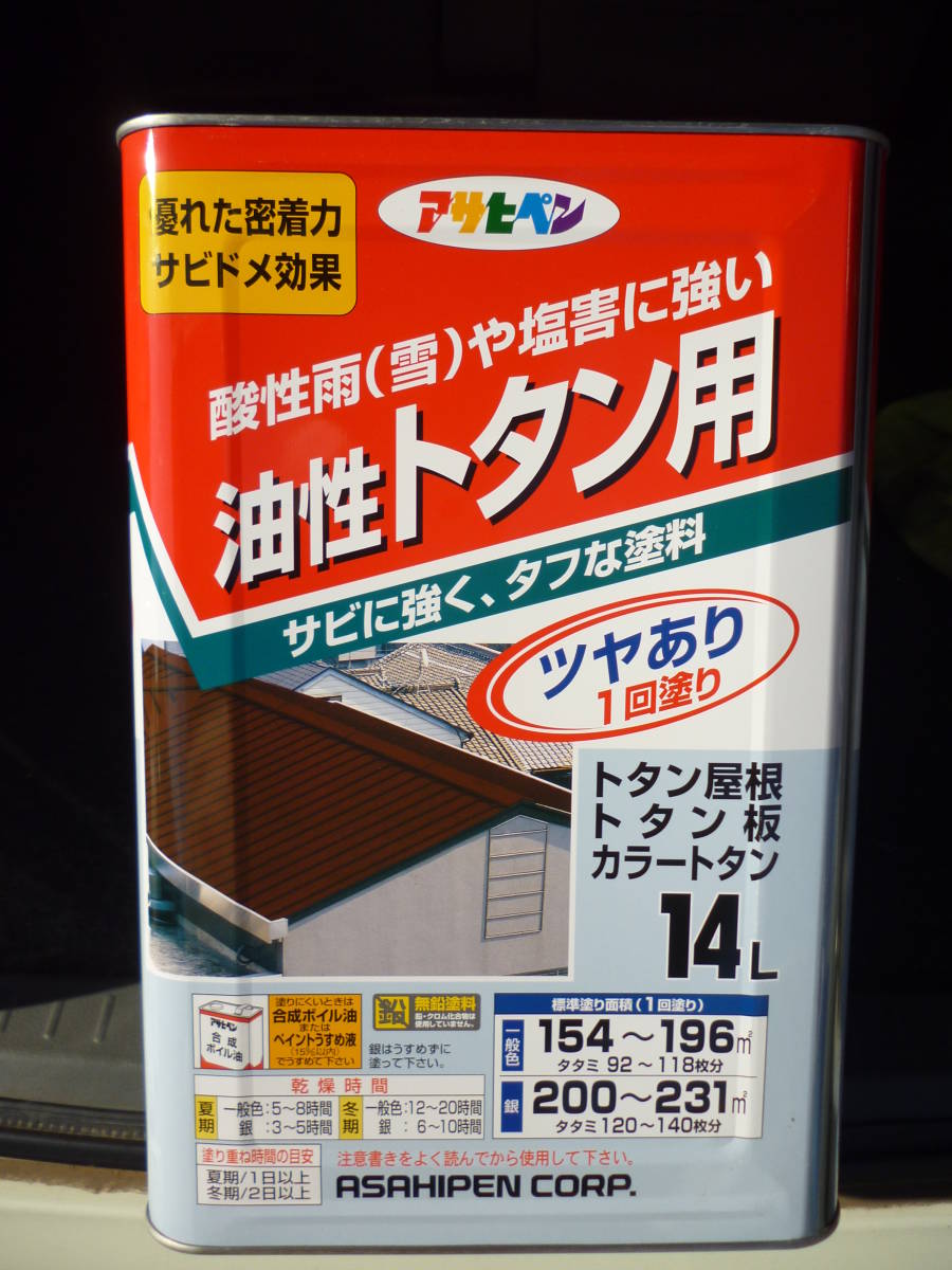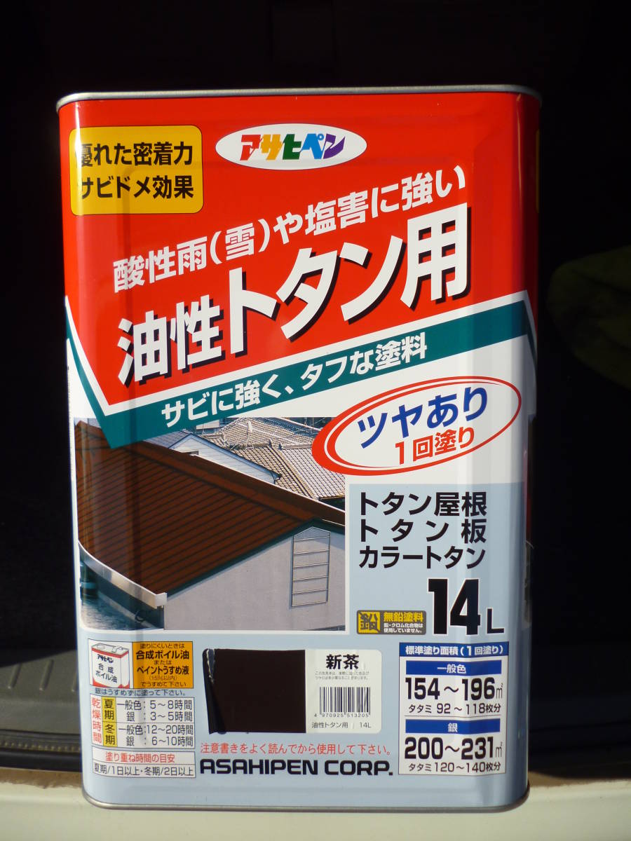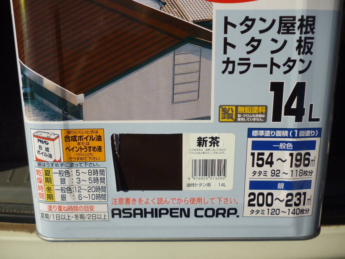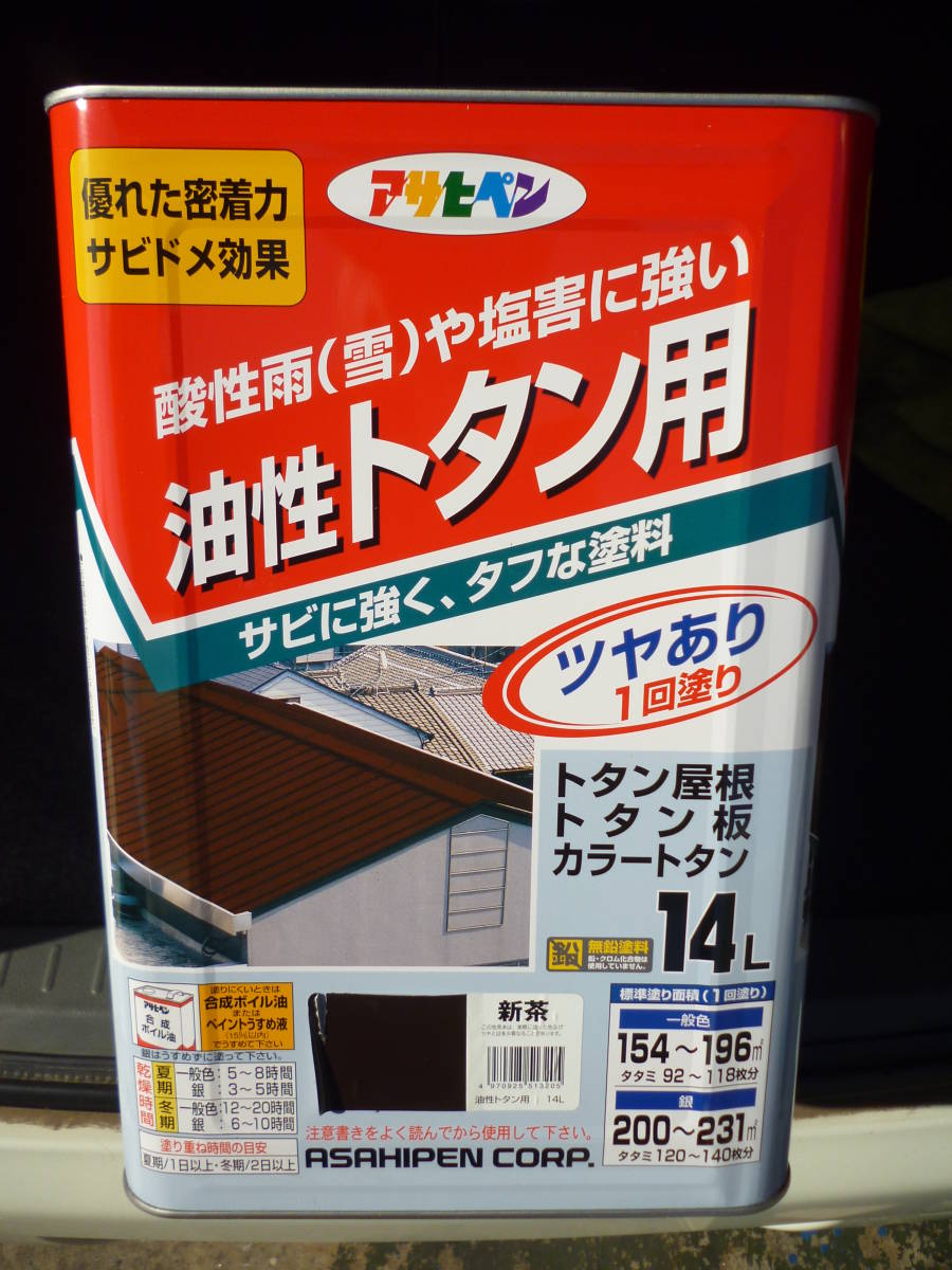 アサヒペン 油性トタン用 14L 新茶 耐久性にすぐれ、酸性雨(雪)や塩害に強いトタン専用塗料です。未開封 未使用 中古扱い