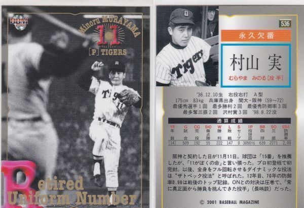 ●2001BBM 【村山 実】 永久欠番 No.536:阪神 R9