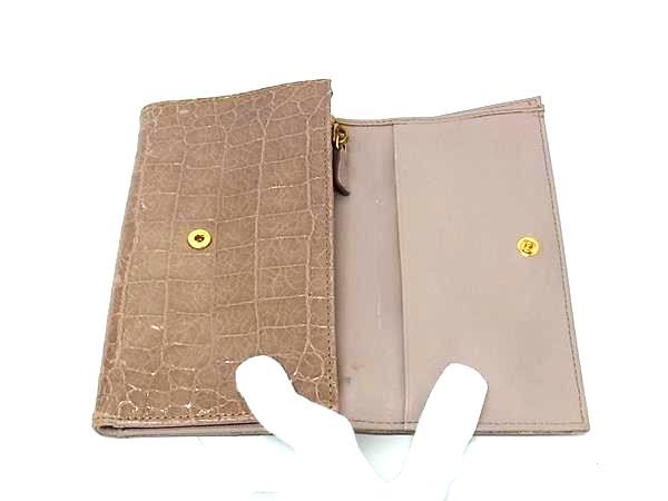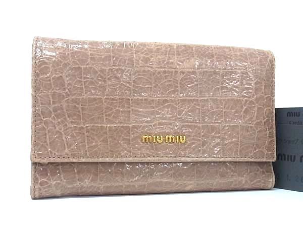 miumiu ミュウミュウ クロコダイル型押しレザー 二つ折り 財布 ウォレット レディース ピンクベージュ系 DD9306