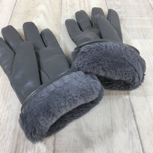 NZ722●DENTS ラビットファー レザー グローブ●7 1/2●グレー デンツ 手袋