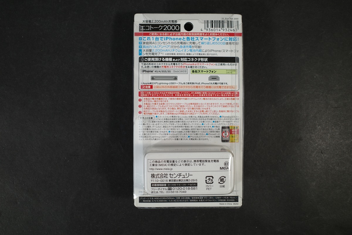 1円~ 未使用 CENTURY モバイルバッテリー☆エコトーク2000■Eco Talk 2000