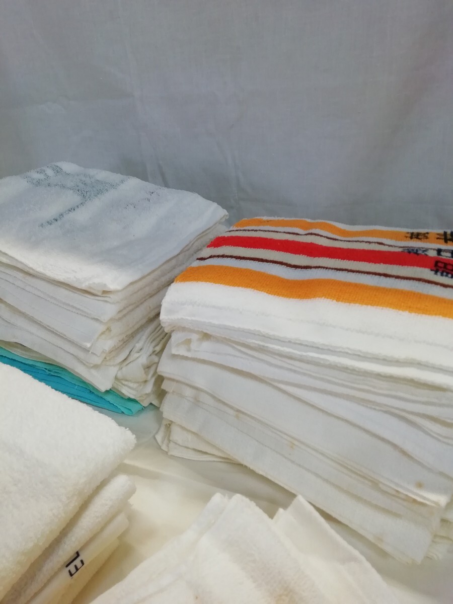 タオル40枚まとめ売りです。未使用品ですが保管中のシミ汚れがついているので磨き布やウエスなどにいかがでしょうか。