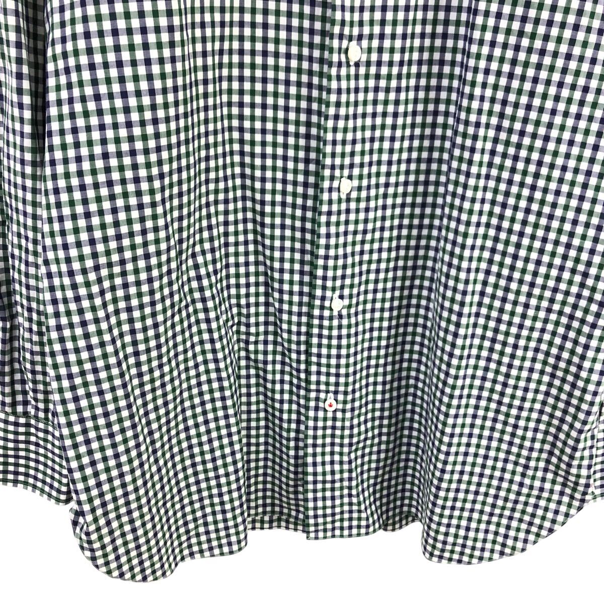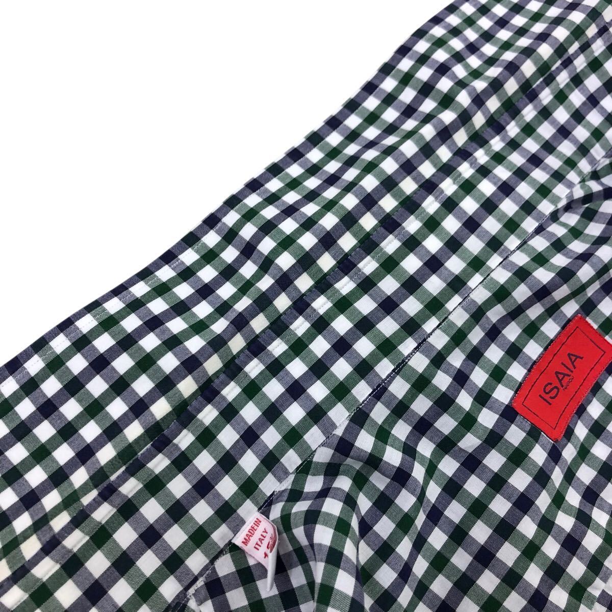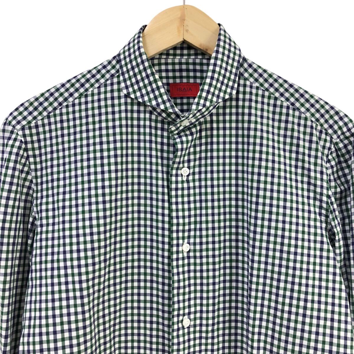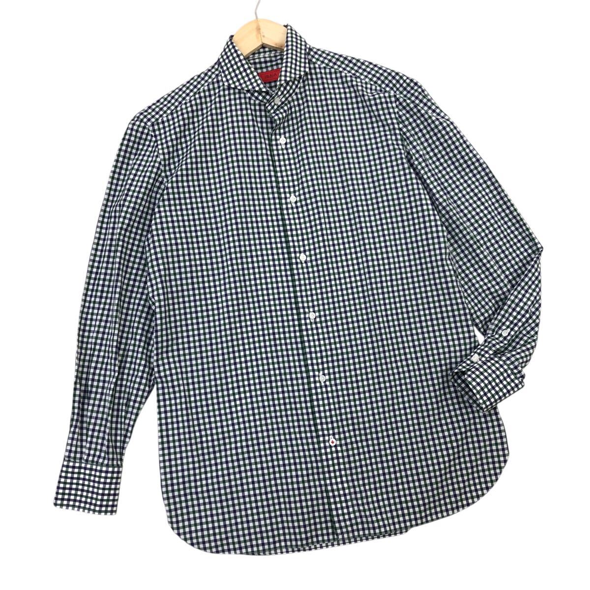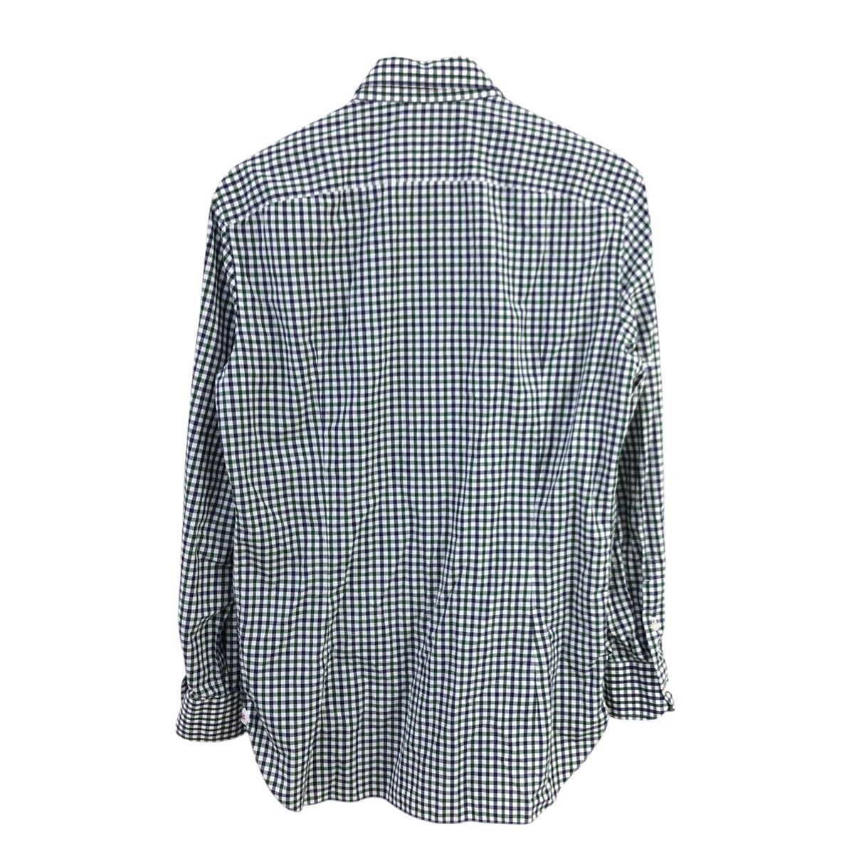 10m667-34 イタリア製 ISAIA イザイア ギンガムチェックシャツ 長袖 シャツ ワイシャツ トップス ネイビー グリーン メンズ 40